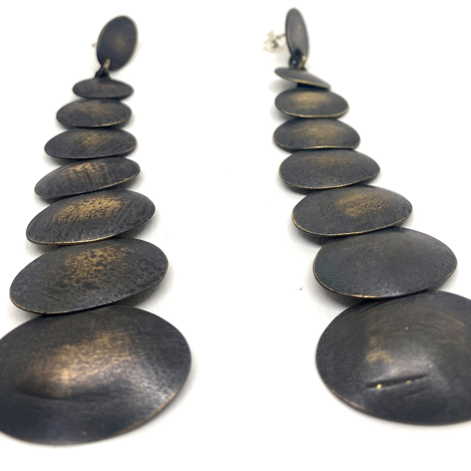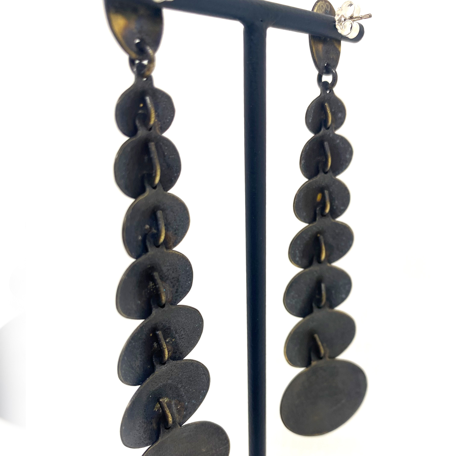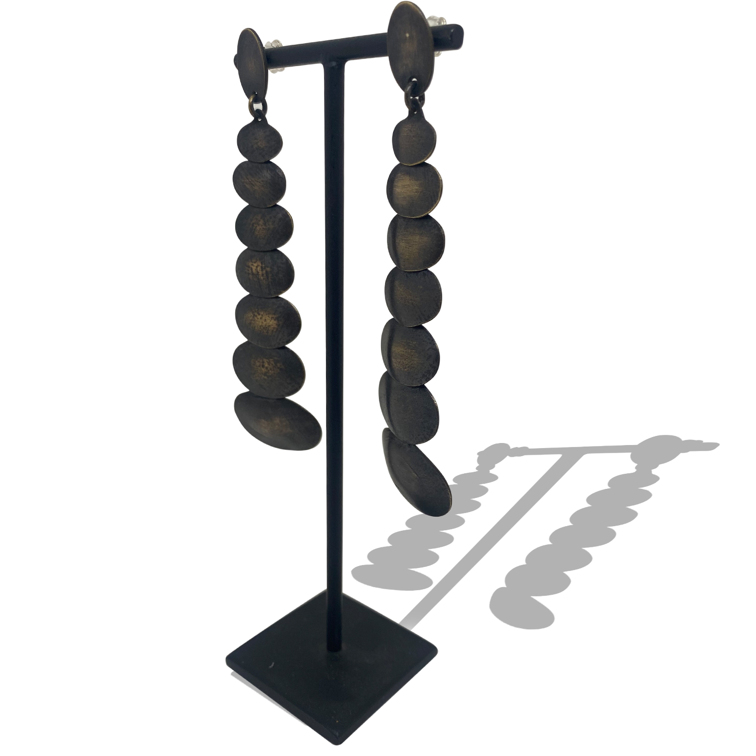 Une longue paire de boucles d’oreilles constituée d’une superposition de pastilles ovales assemblées entre-elles et articulées. Elles sont originales, légères et graphiques. Ce sont des boucles d’oreilles que vous pourrez porter à tout moment de la journée ou en soirée. Quelque soit l’évènement elles feront de l’effet.
