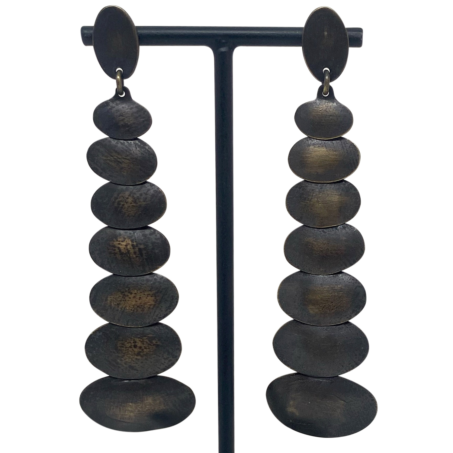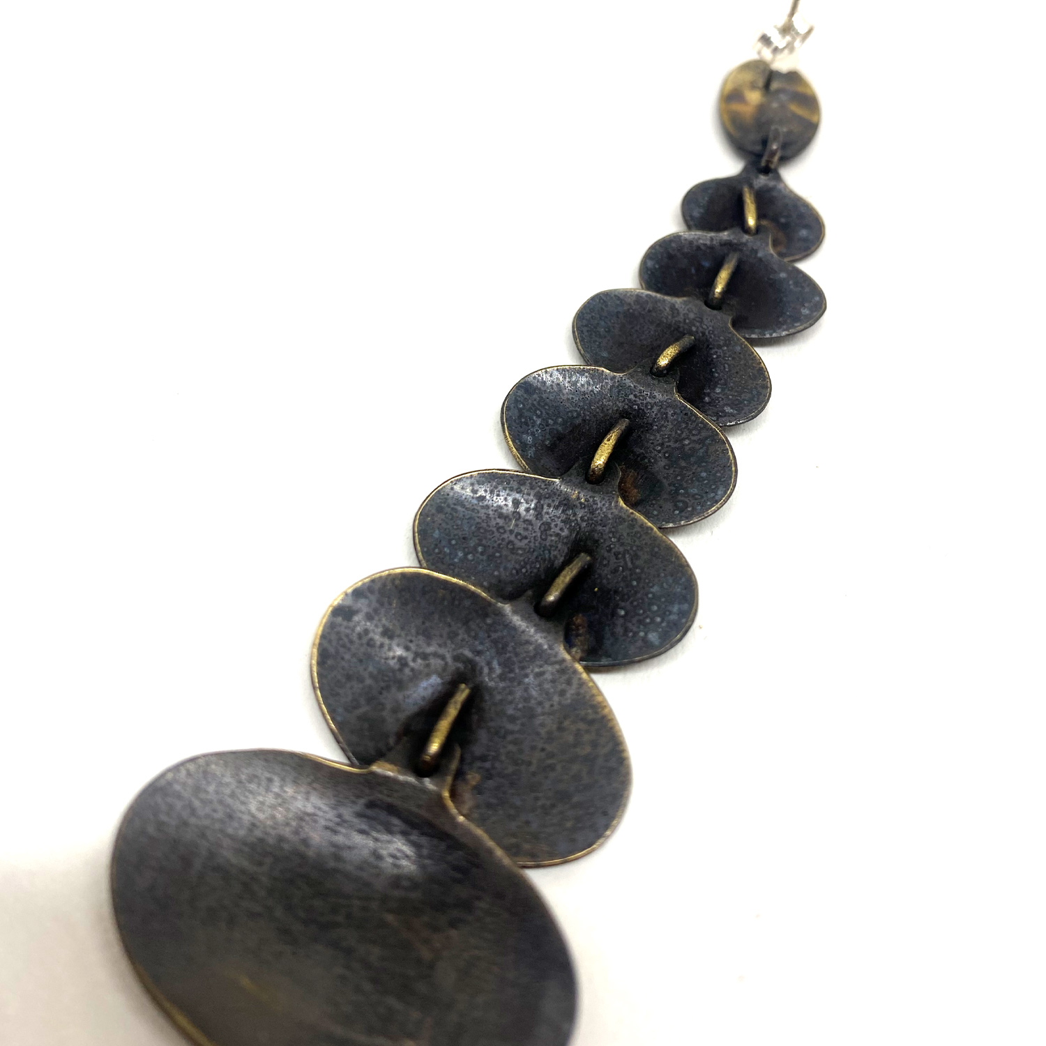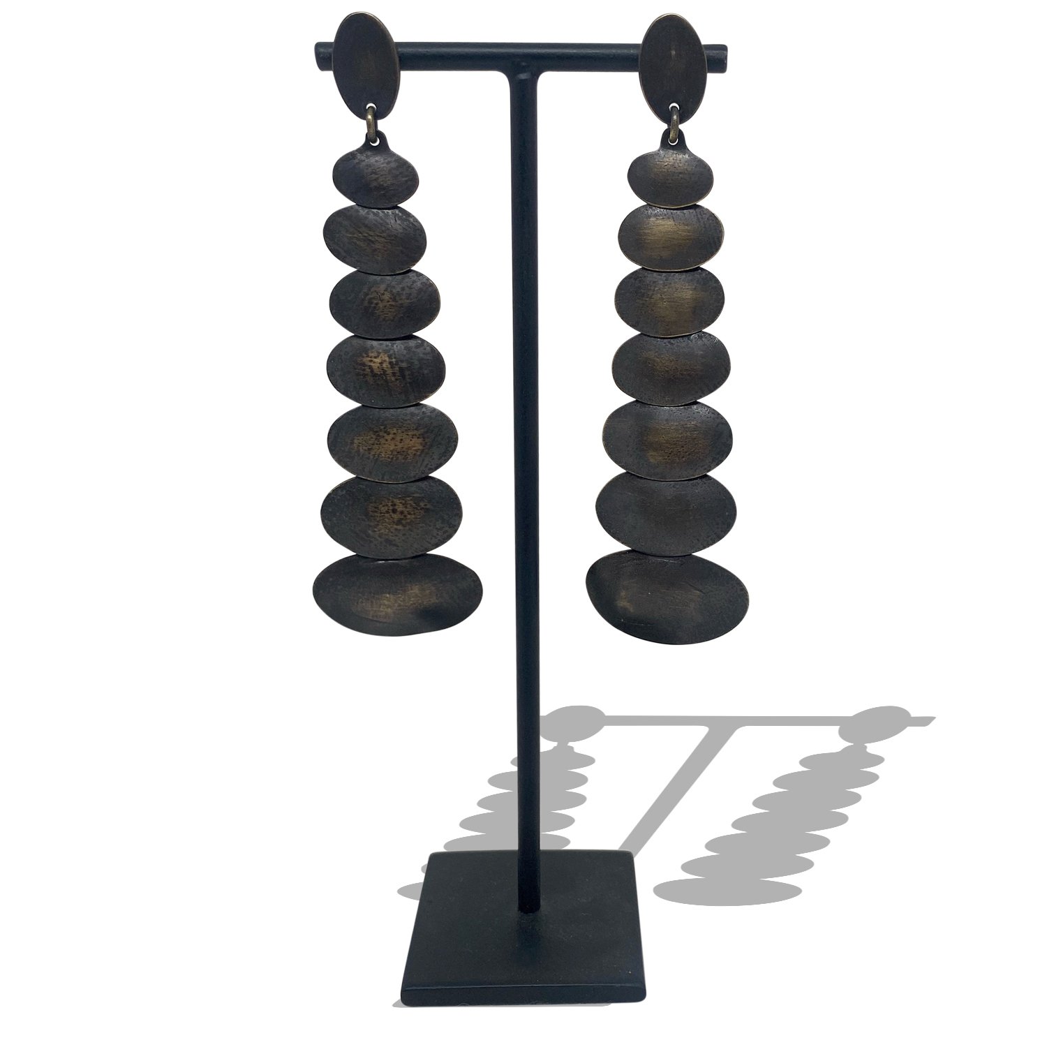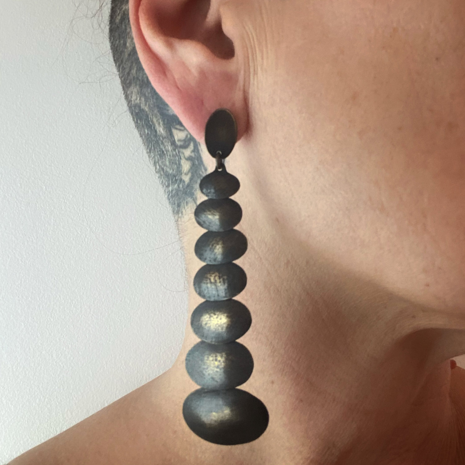 Une longue paire de boucles d’oreilles constituée d’une superposition de pastilles ovales assemblées entre-elles et articulées. Elles sont originales, légères et graphiques. Ce sont des boucles d’oreilles que vous pourrez porter à tout moment de la journée ou en soirée. Quelque soit l’évènement elles feront de l’effet.