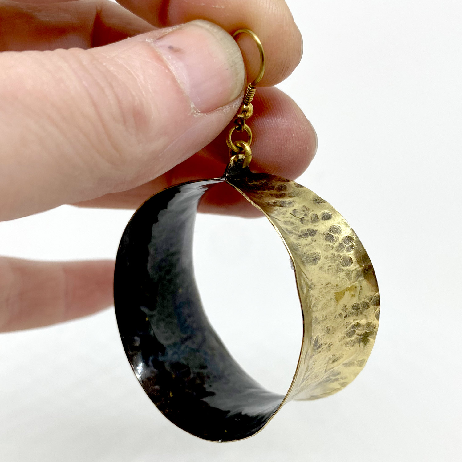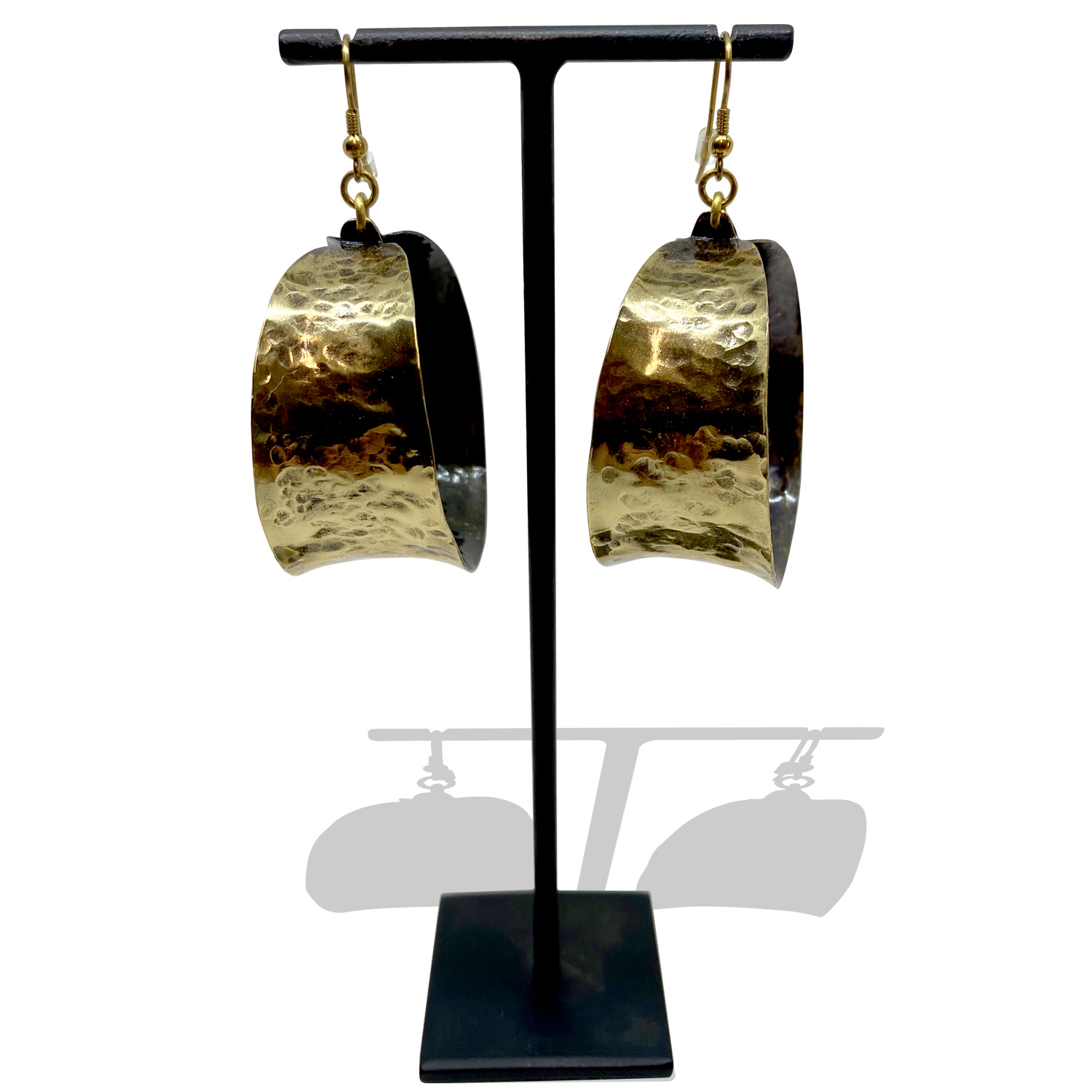 Chaque boucle d’oreille évoque une histoire, un récit façonné par la fusion de matériaux nobles et de savoir-faire ancestral. Les courbes délicates du laiton capturent la lumière et révélant une patine naturelle qui confère une aura de mystère.