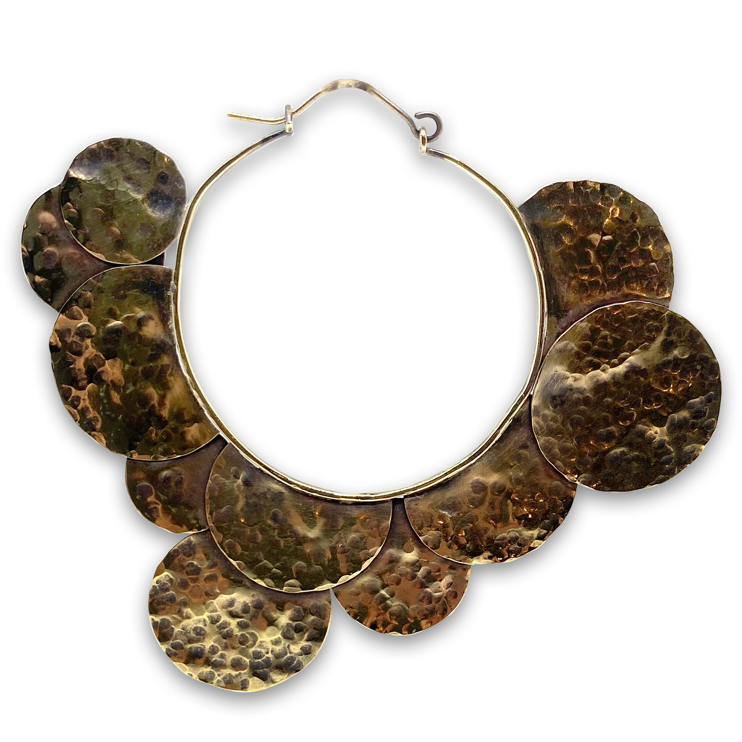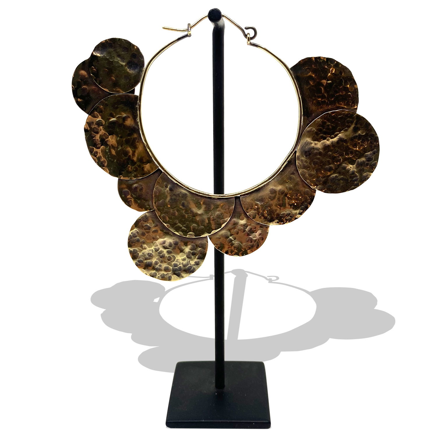 Le laiton martelé confère à ces créoles une texture unique, capturant la lumière de manière envoûtante. Sa dimension imposante font de cette boucle d’oreille un véritable statement, ajoutant une touche de caractère à n’importe quelle tenue, qu’elle soit décontractée ou habillée.