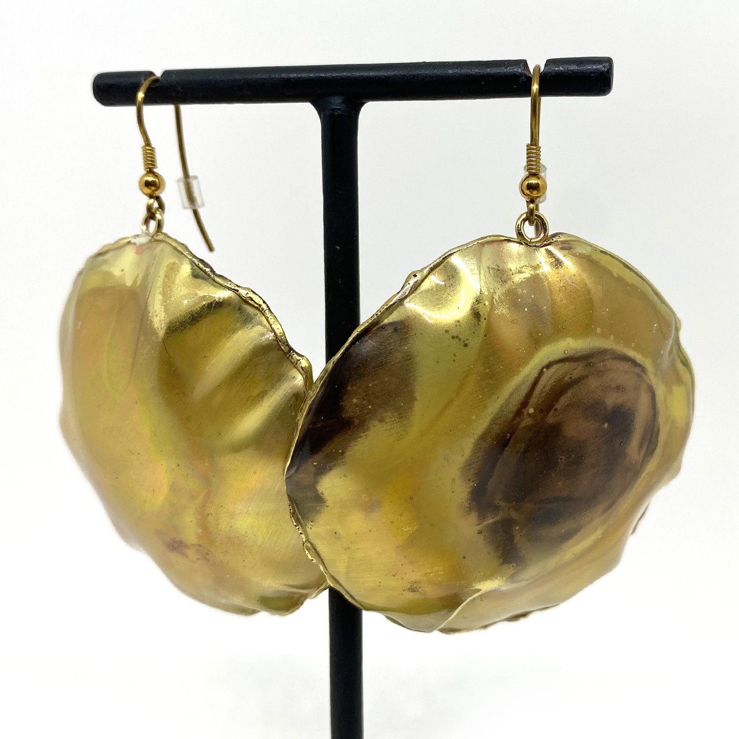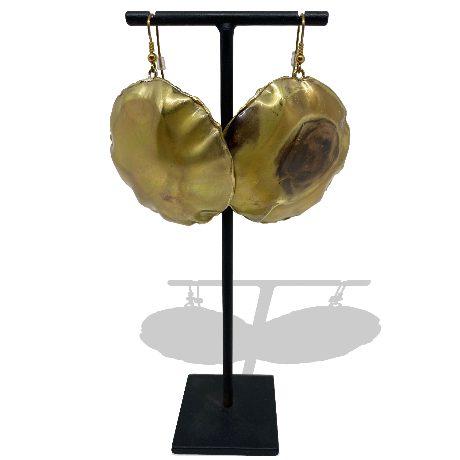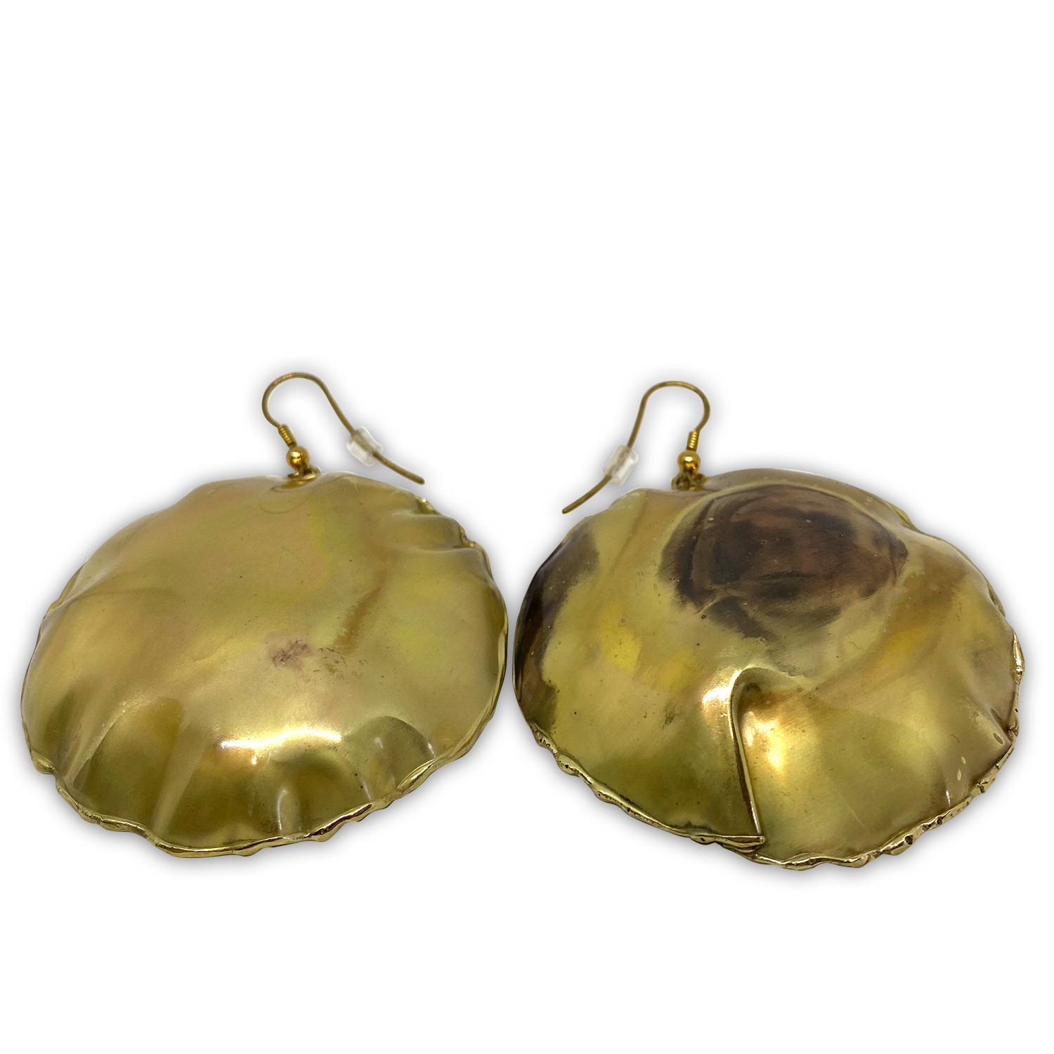 Ces boucles d’oreilles, aux contours ronds et distinctifs, portent la marque subtile et fascinante du feu, laissant derrière elles une trace qui évoque la force élémentaire et la transformation. Chaque détail est méticuleusement conçu pour célébrer cette empreinte unique, conférant au laiton une texture et une beauté uniques qui racontent une histoire d’intensité.