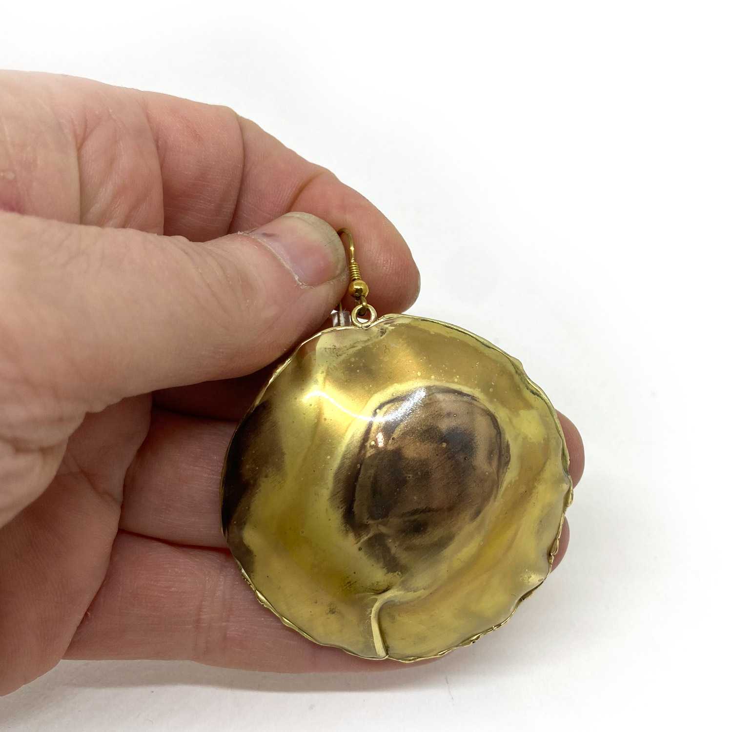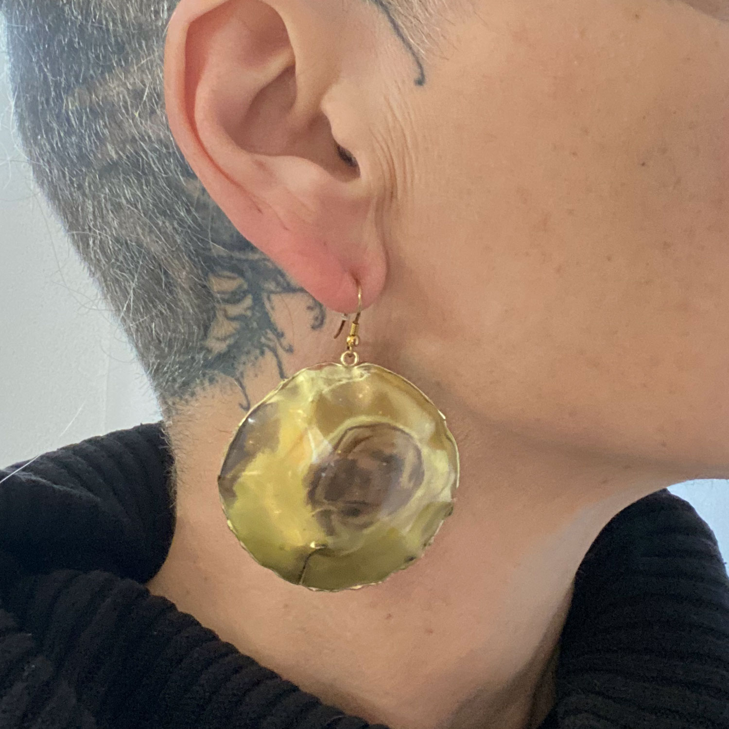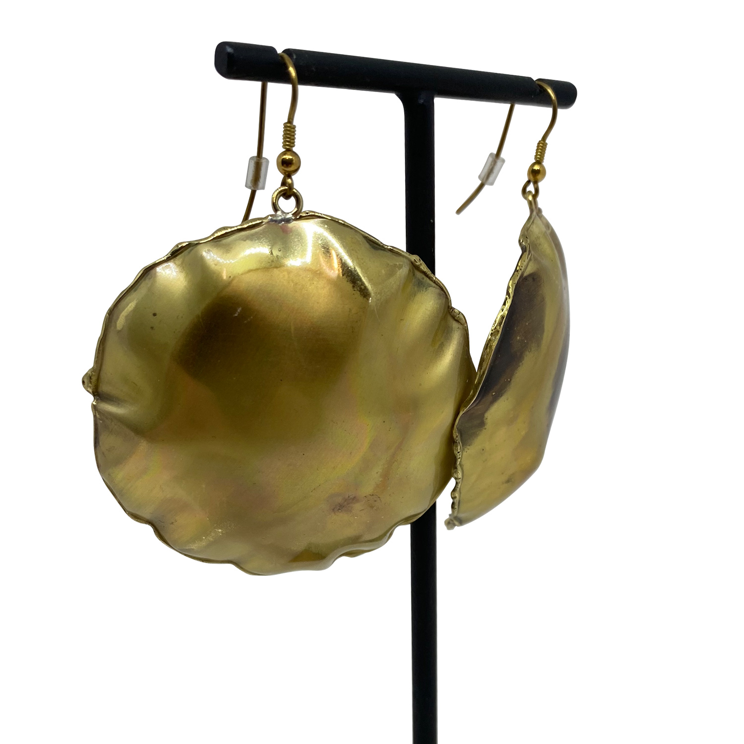 Ces boucles d’oreilles, aux contours ronds et distinctifs, portent la marque subtile et fascinante du feu, laissant derrière elles une trace qui évoque la force élémentaire et la transformation. Chaque détail est méticuleusement conçu pour célébrer cette empreinte unique, conférant au laiton une texture et une beauté uniques qui racontent une histoire d’intensité.