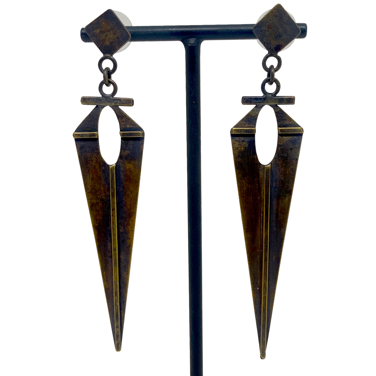 Ces boucles d’oreilles, longues et élégantes, incarnent l’esprit indomptable de l’Excalibur, symbole intemporel de bravoure et de pouvoir. Chaque détail est façonné avec précision pour capturer la majesté de cette légende, le laiton patiné brun ajoutant une aura antique et mystique à ces pièces uniques.