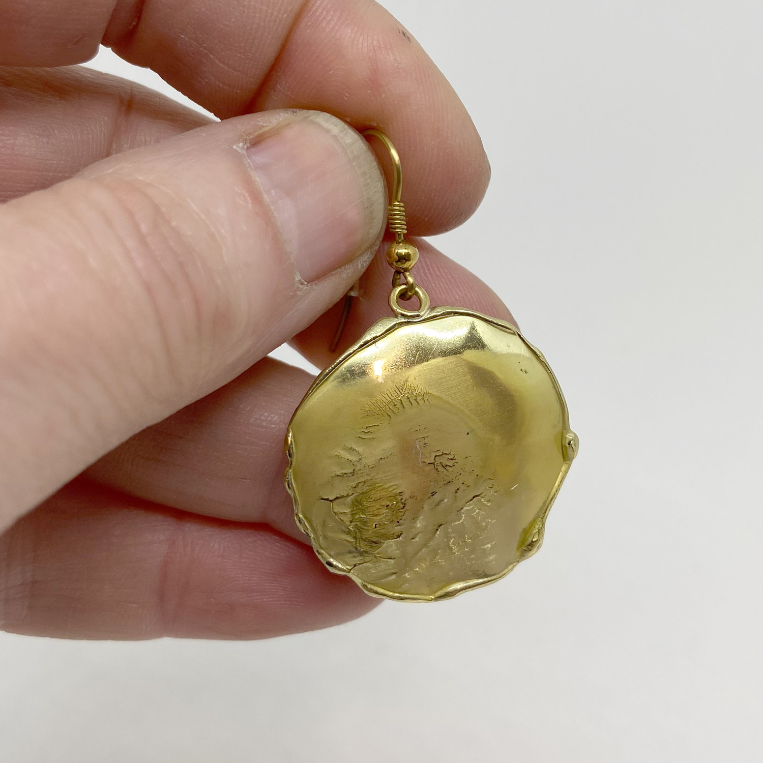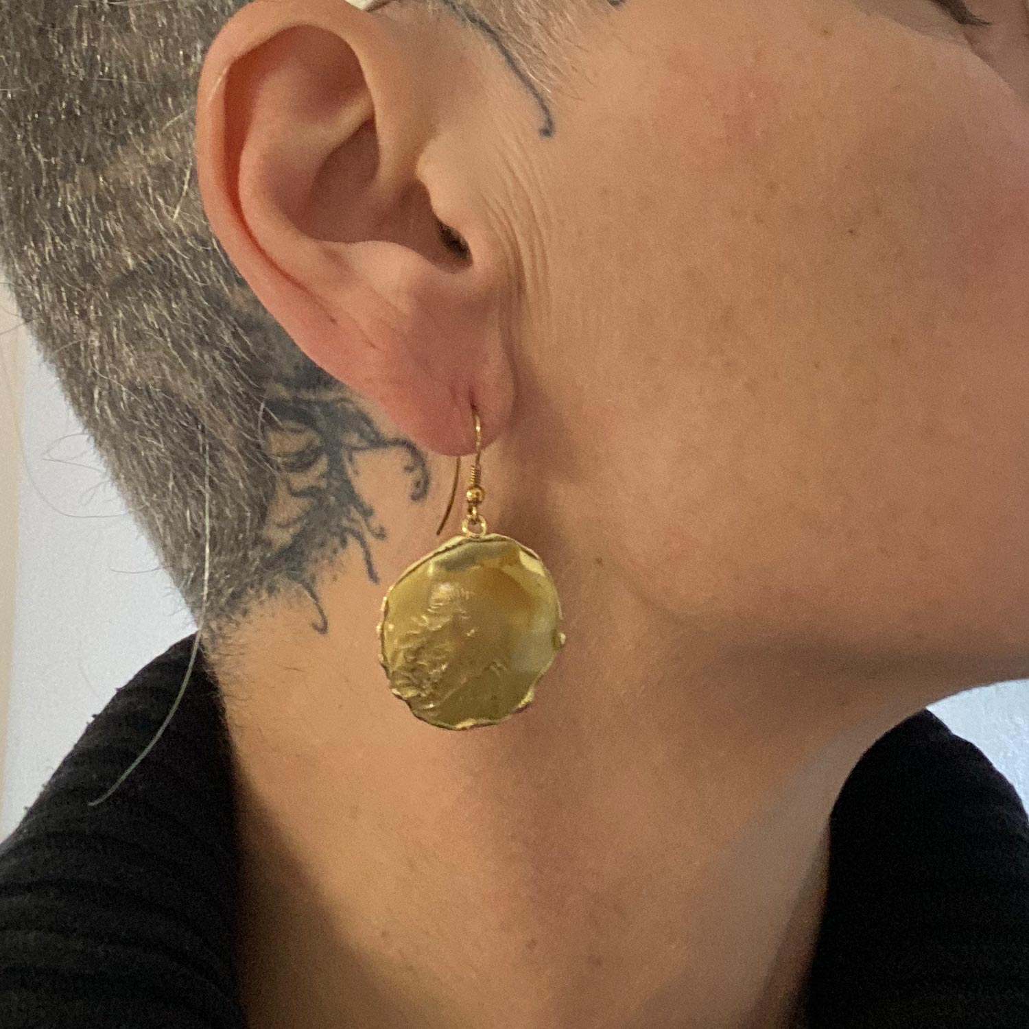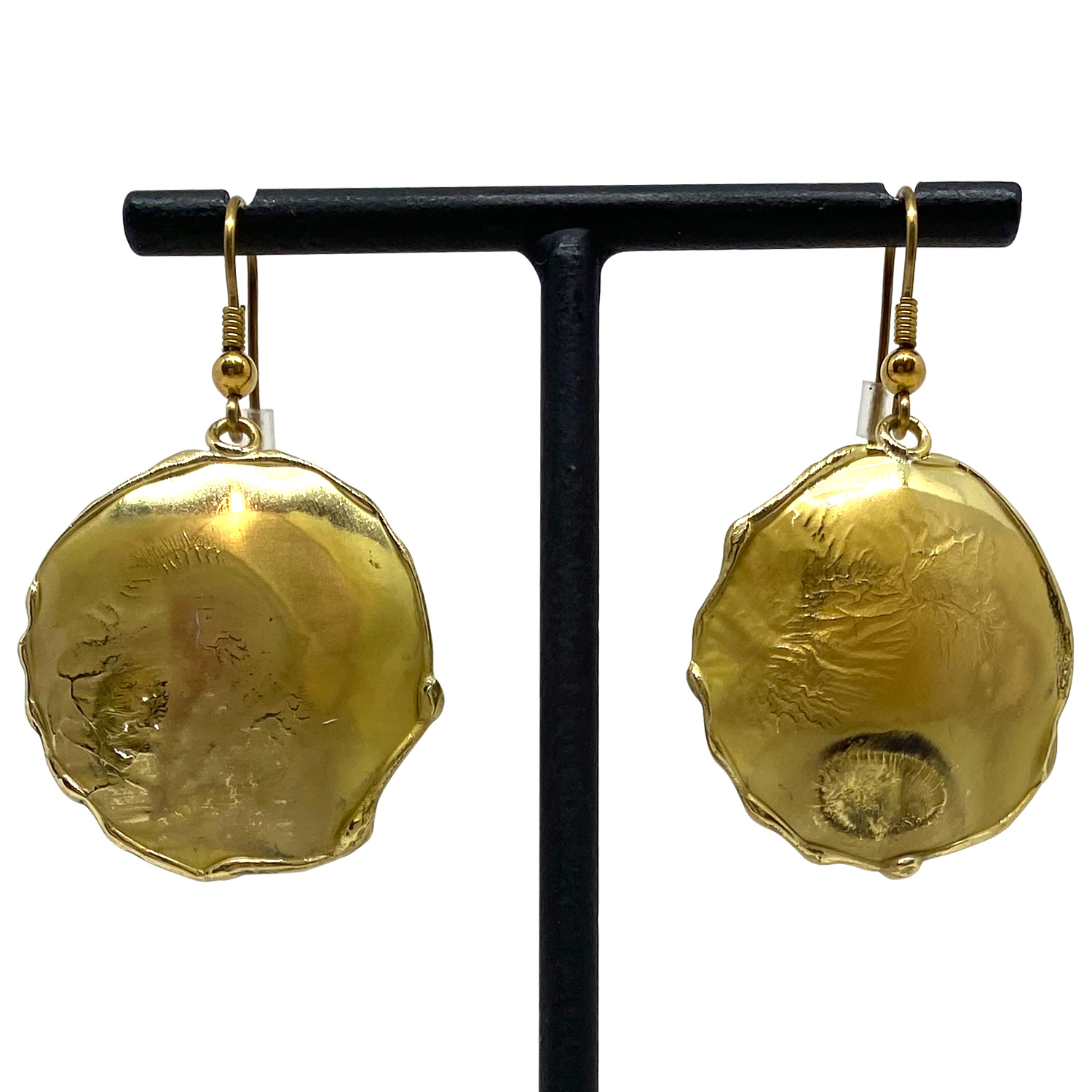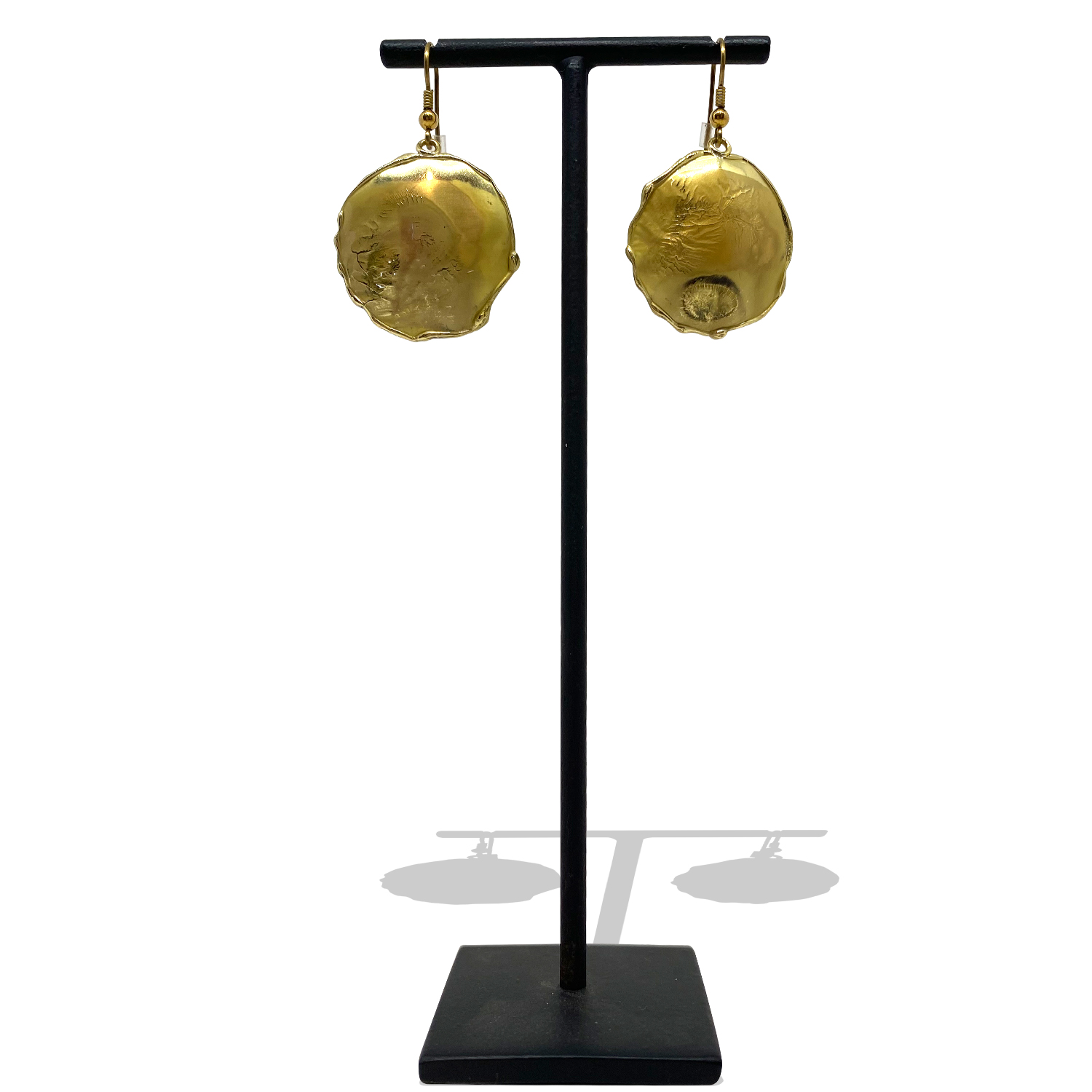 Ces boucles d’oreilles, aux contours ronds et distinctifs, portent la marque subtile et fascinante du feu, laissant derrière elles une trace qui évoque la force élémentaire et la transformation. Chaque détail est méticuleusement conçu pour célébrer cette empreinte unique, conférant au laiton une texture et une beauté uniques qui racontent une histoire d’intensité.