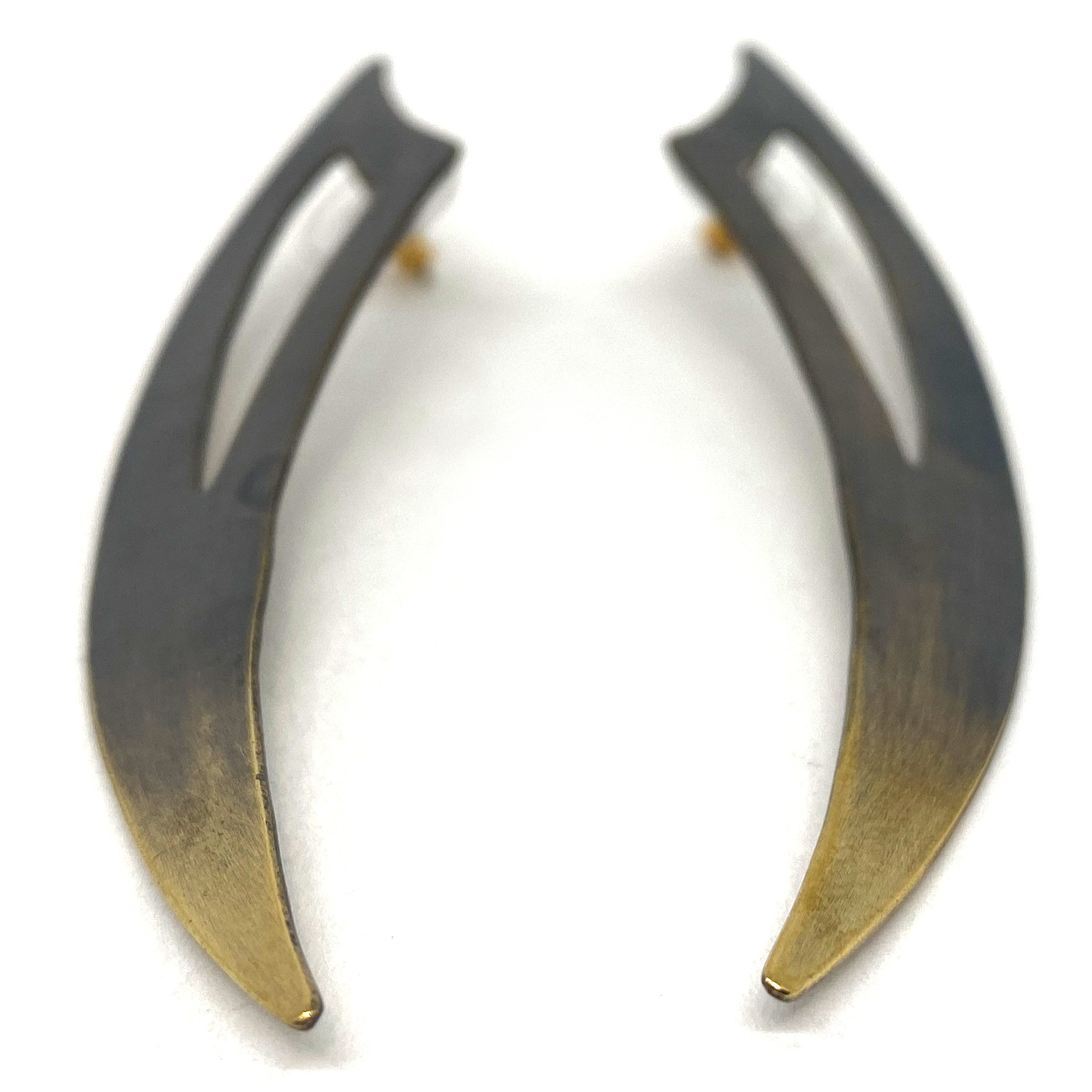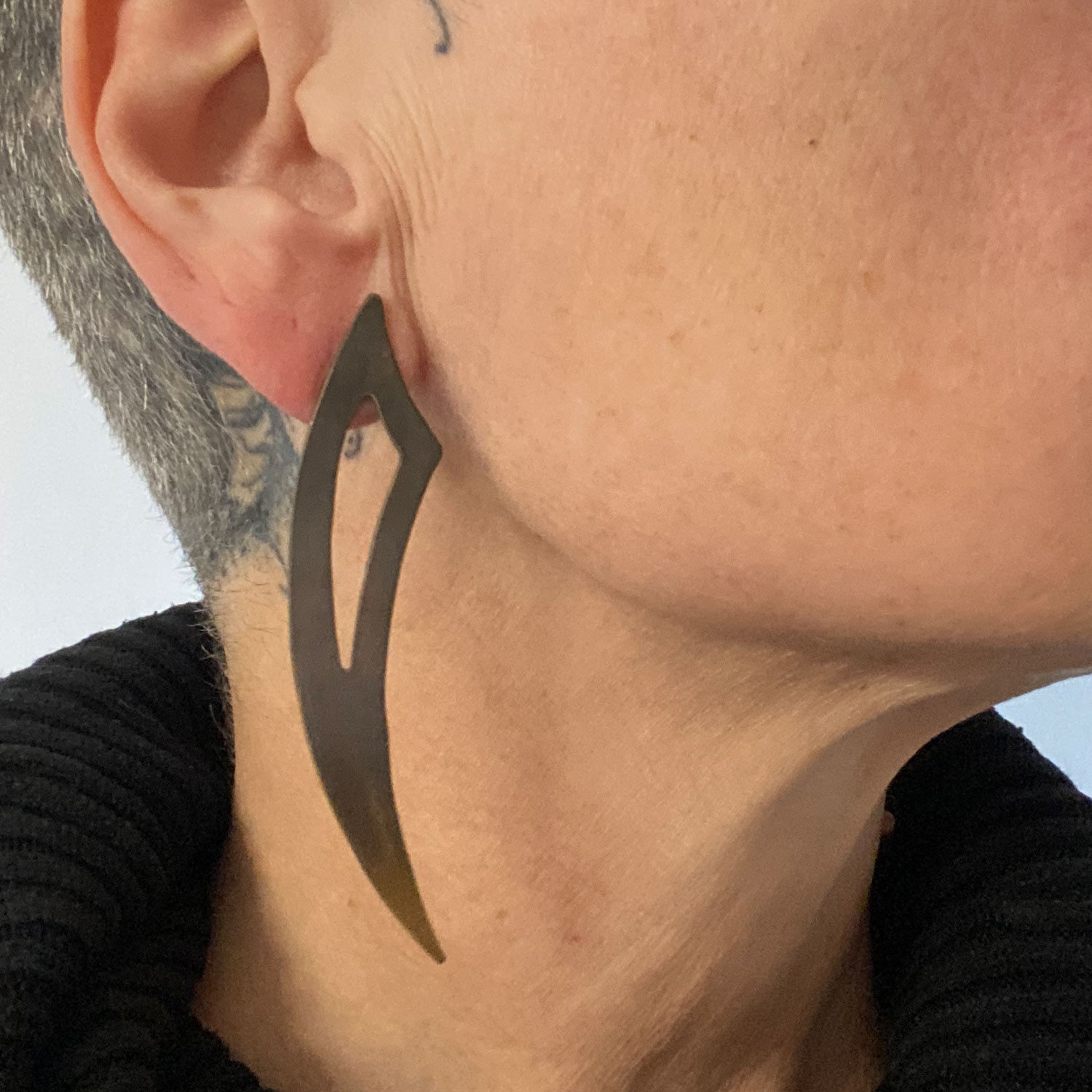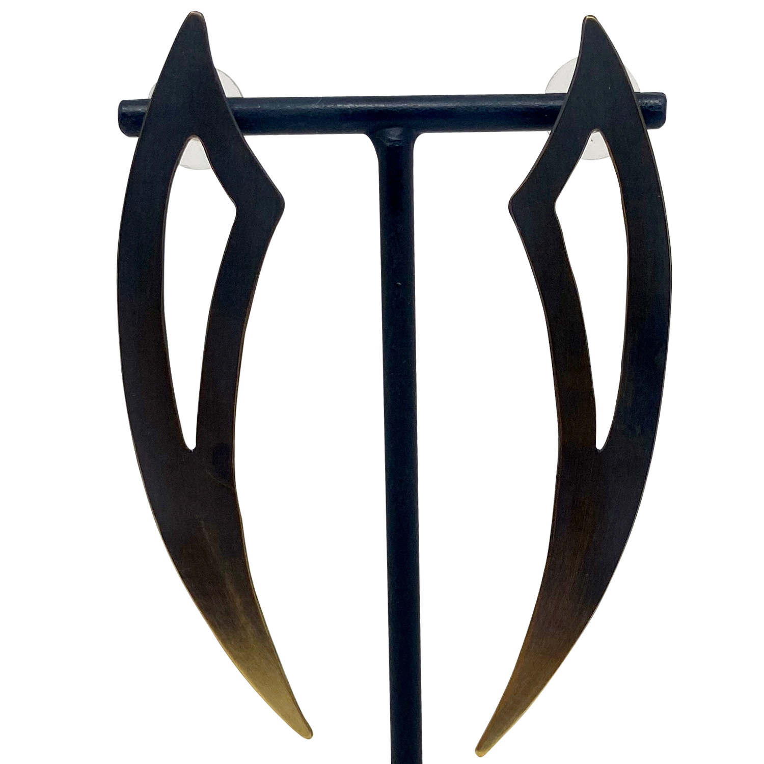 Plongez dans l’univers de l’élégance intemporelle avec nos sublimes boucles d’oreilles en laiton patiné brun, dessinées avec finesse pour rappeler la majesté et la grâce d’un sabre.
