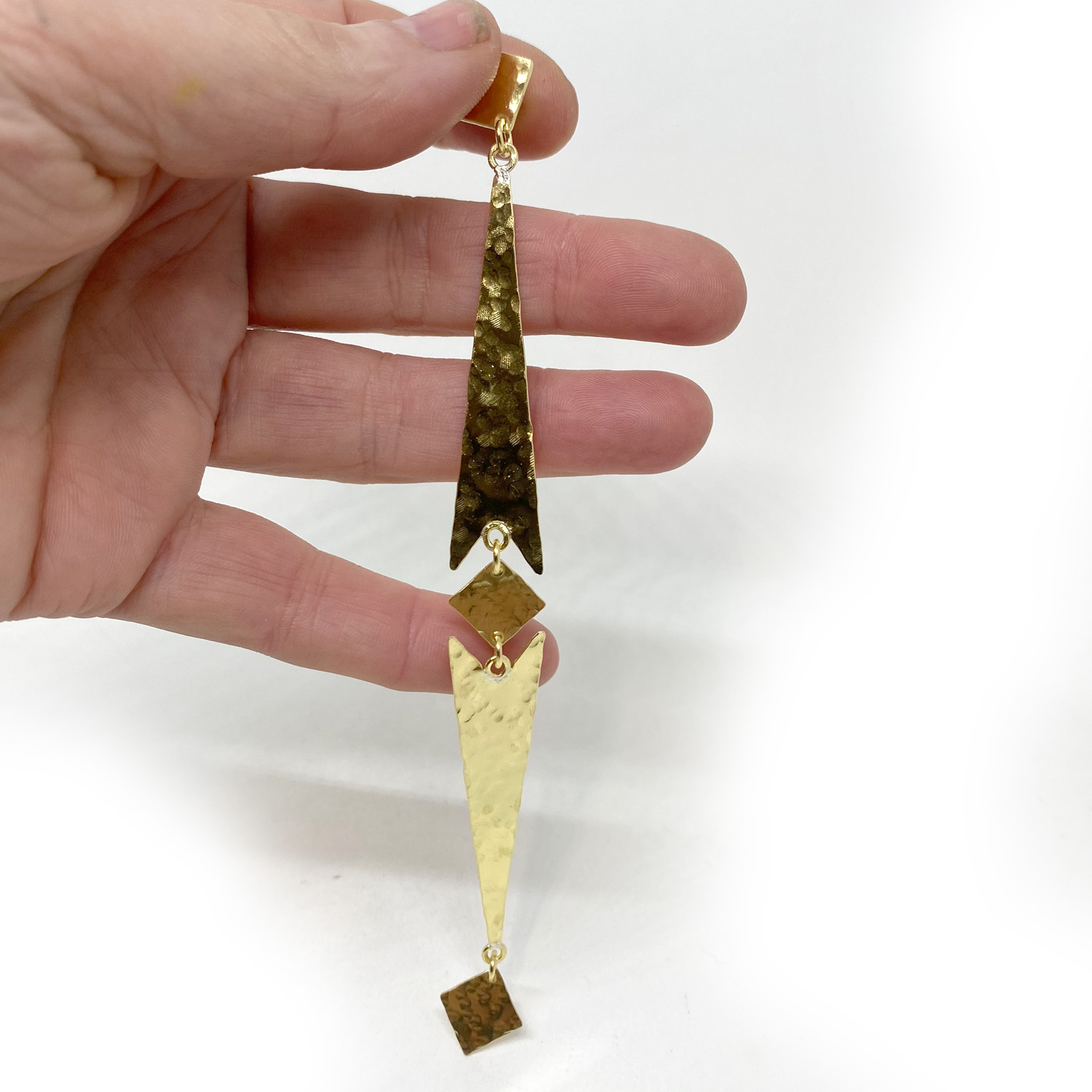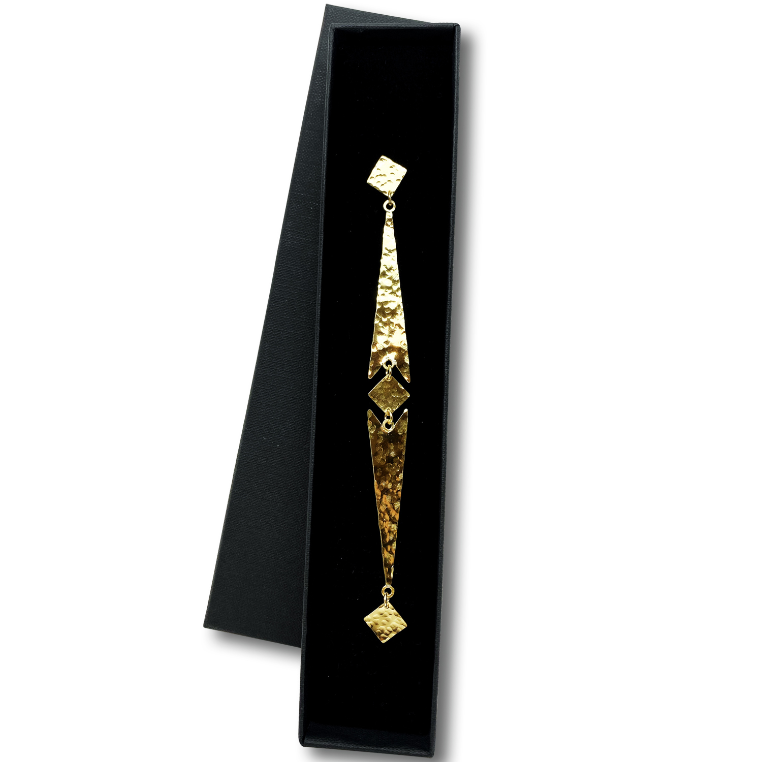 Plongez dans le monde fascinant de l’élégance contemporaine avec notre exceptionnelle boucle d’oreille en laiton martelé, évoquant la forme gracieuse d’une flèche dorée.