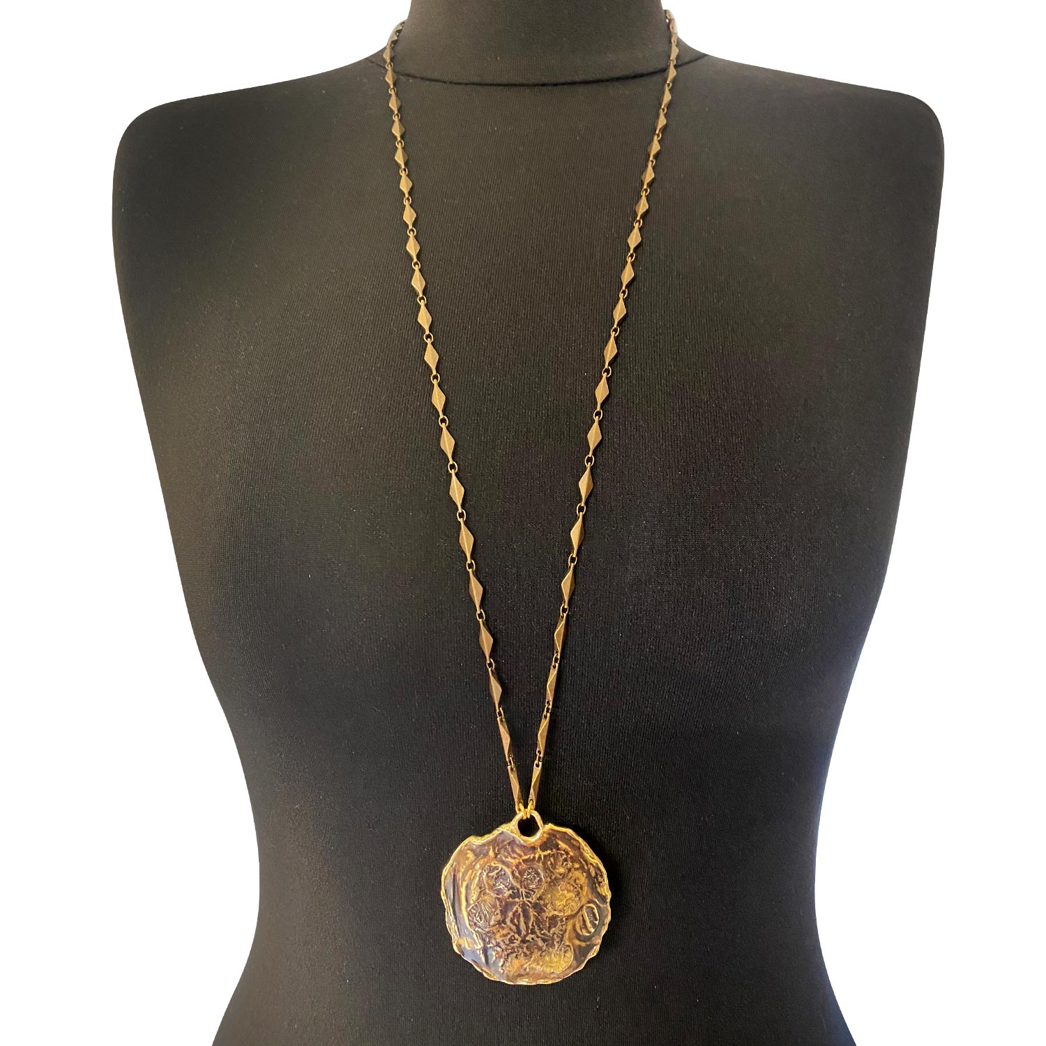 Fabriqué avec une précision artisanale, ce pendentif évoque les mystères et la fascination que la lune suscite depuis des siècles. Sa surface réticulée en laiton vous offre non seulement une esthétique unique, mais également une qualité exceptionnelle qui dure dans le temps.