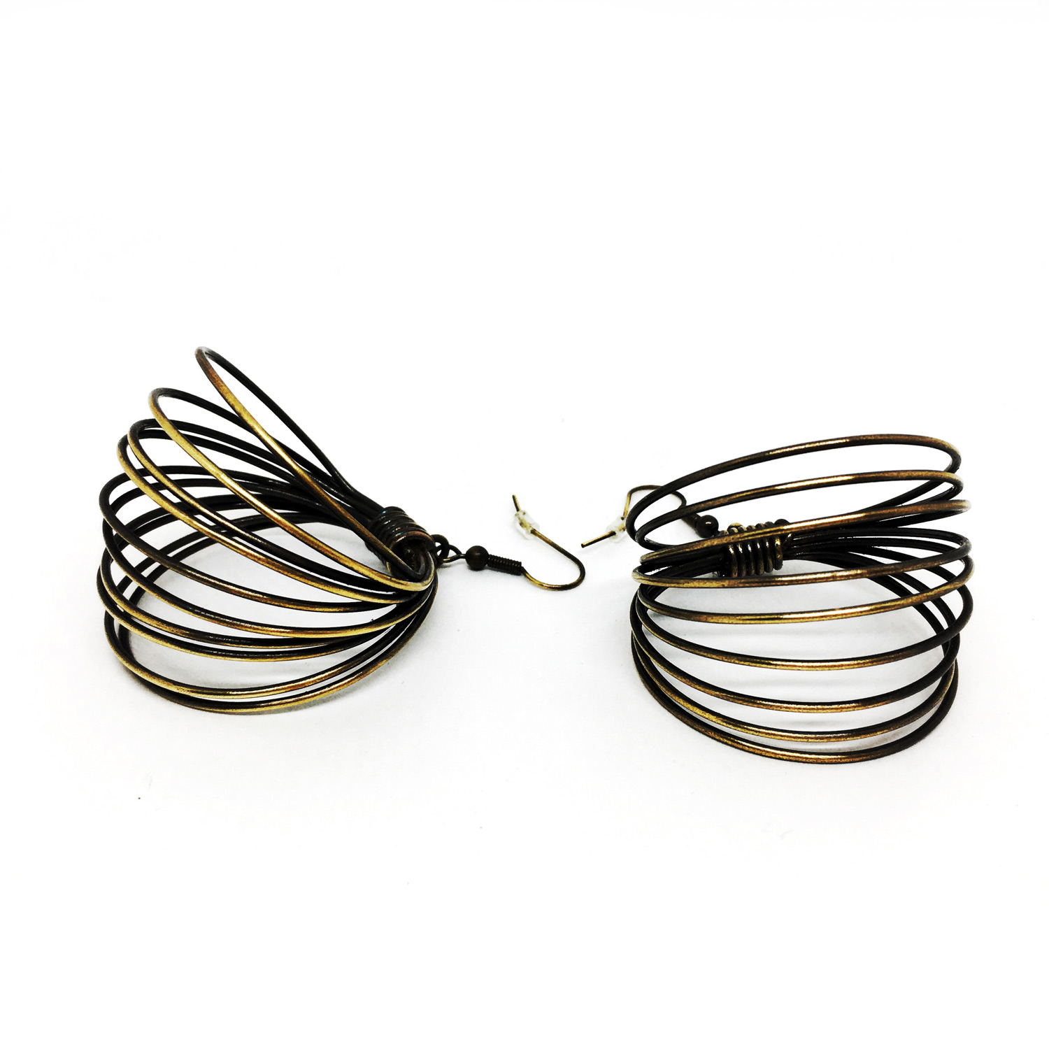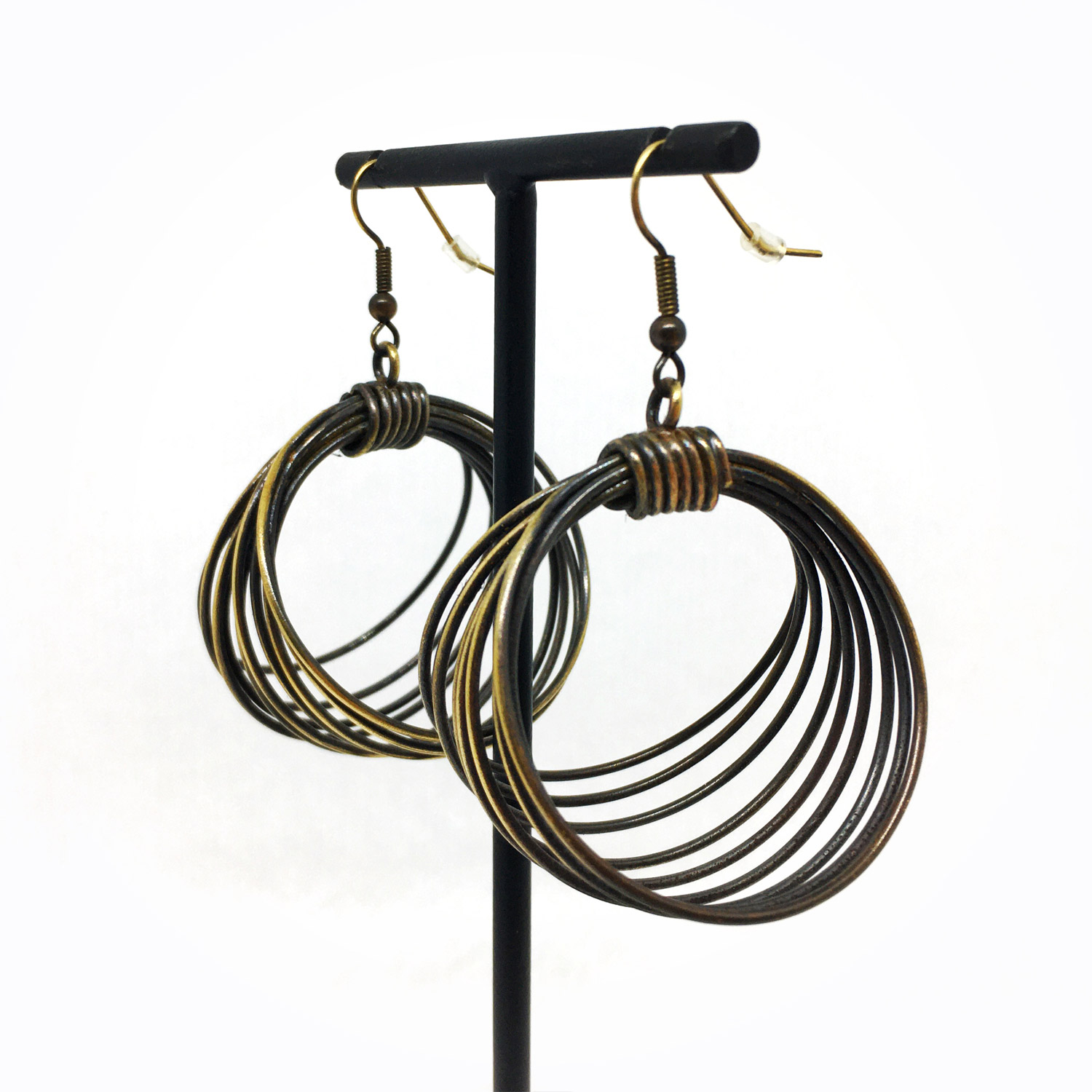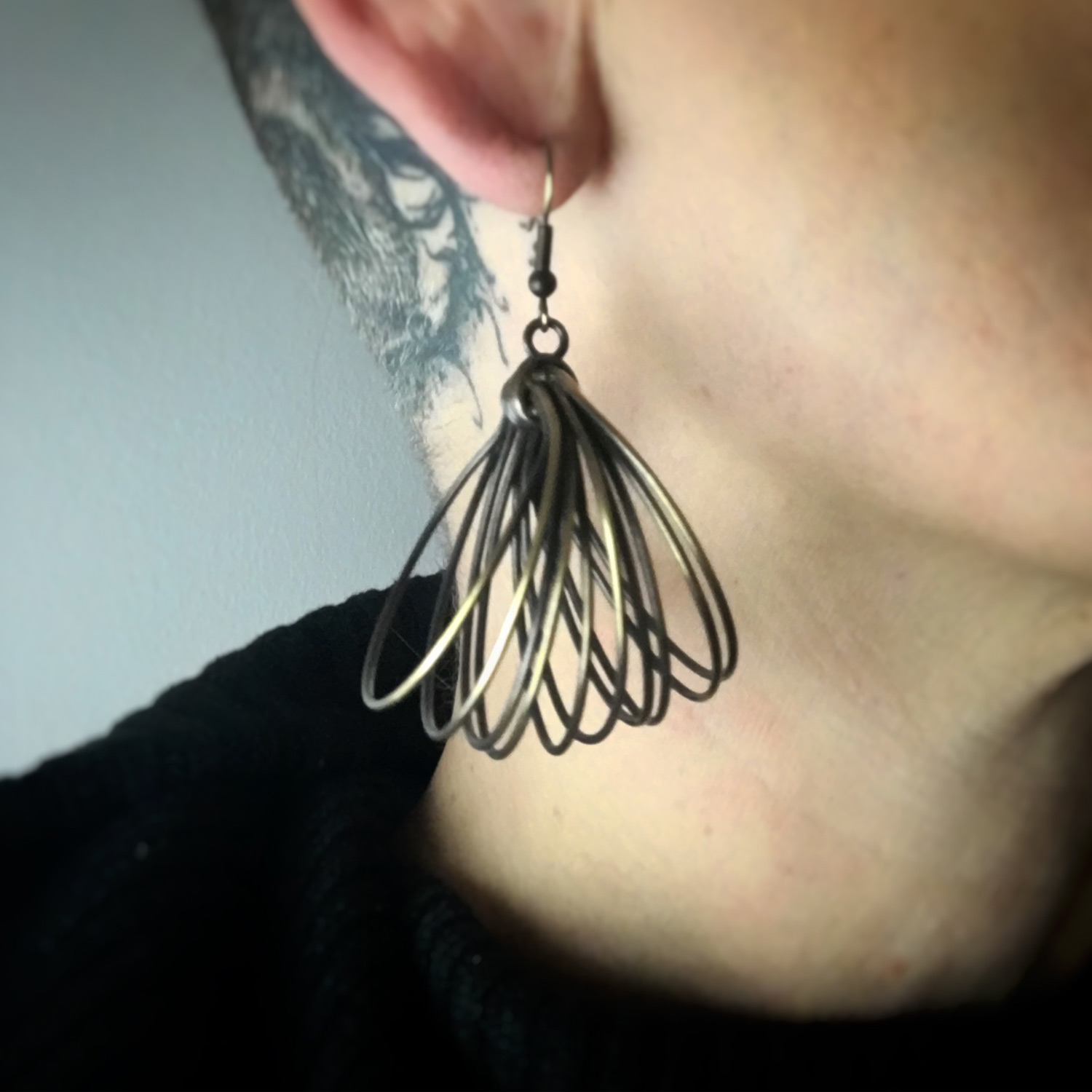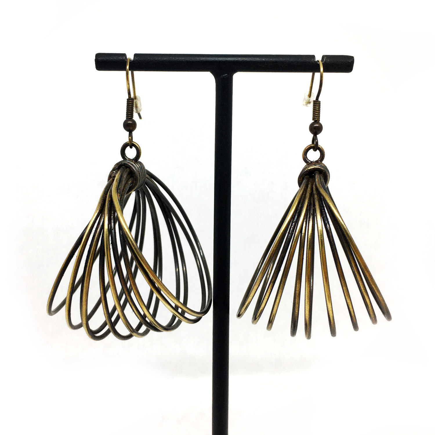 Des boucles d’oreilles pendantes, légères en laiton patiné.