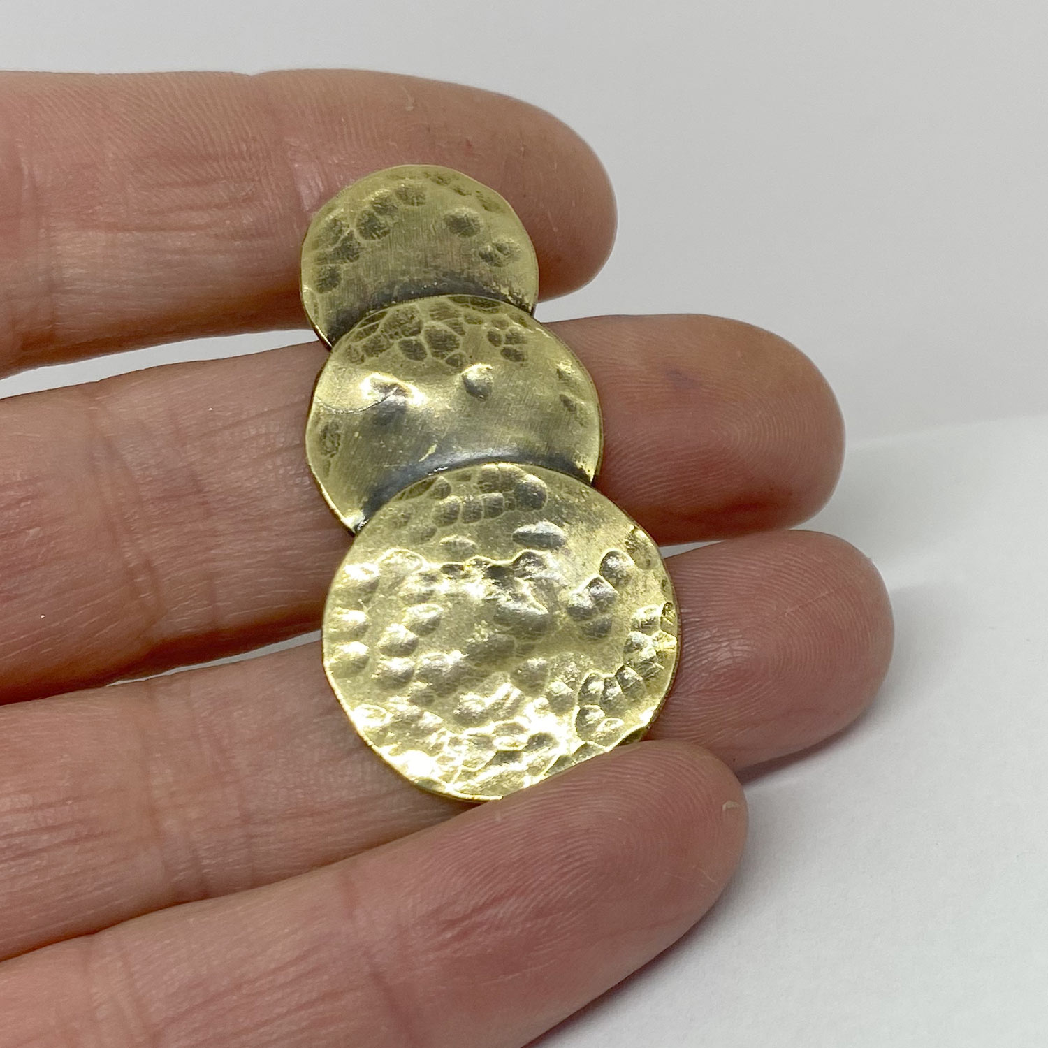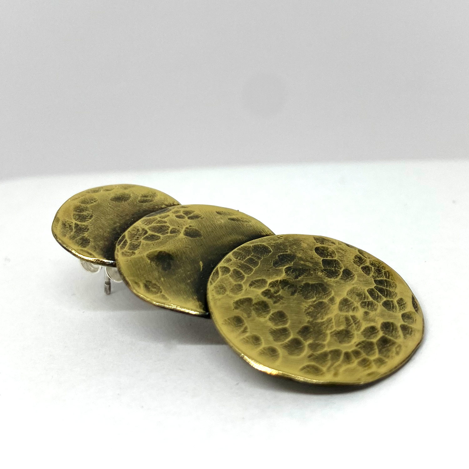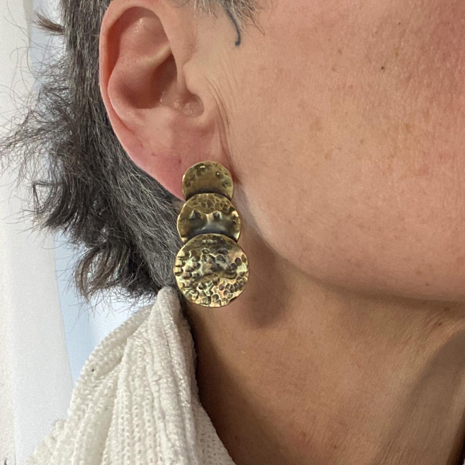 Le laiton martelé ajoute une texture distinctive à la boucle, créant un effet visuel saisissant qui attire instantanément le regard. Son aspect artisanal confère à cette pièce un caractère authentique, faisant de chaque boucle une œuvre d’art unique à part entière.