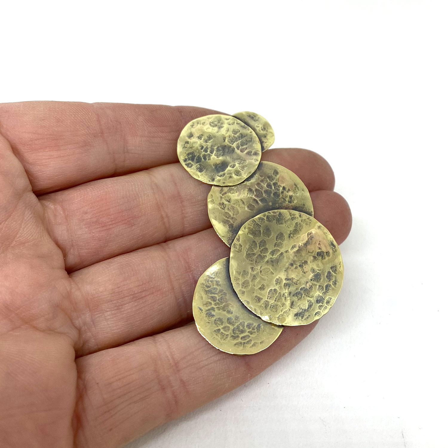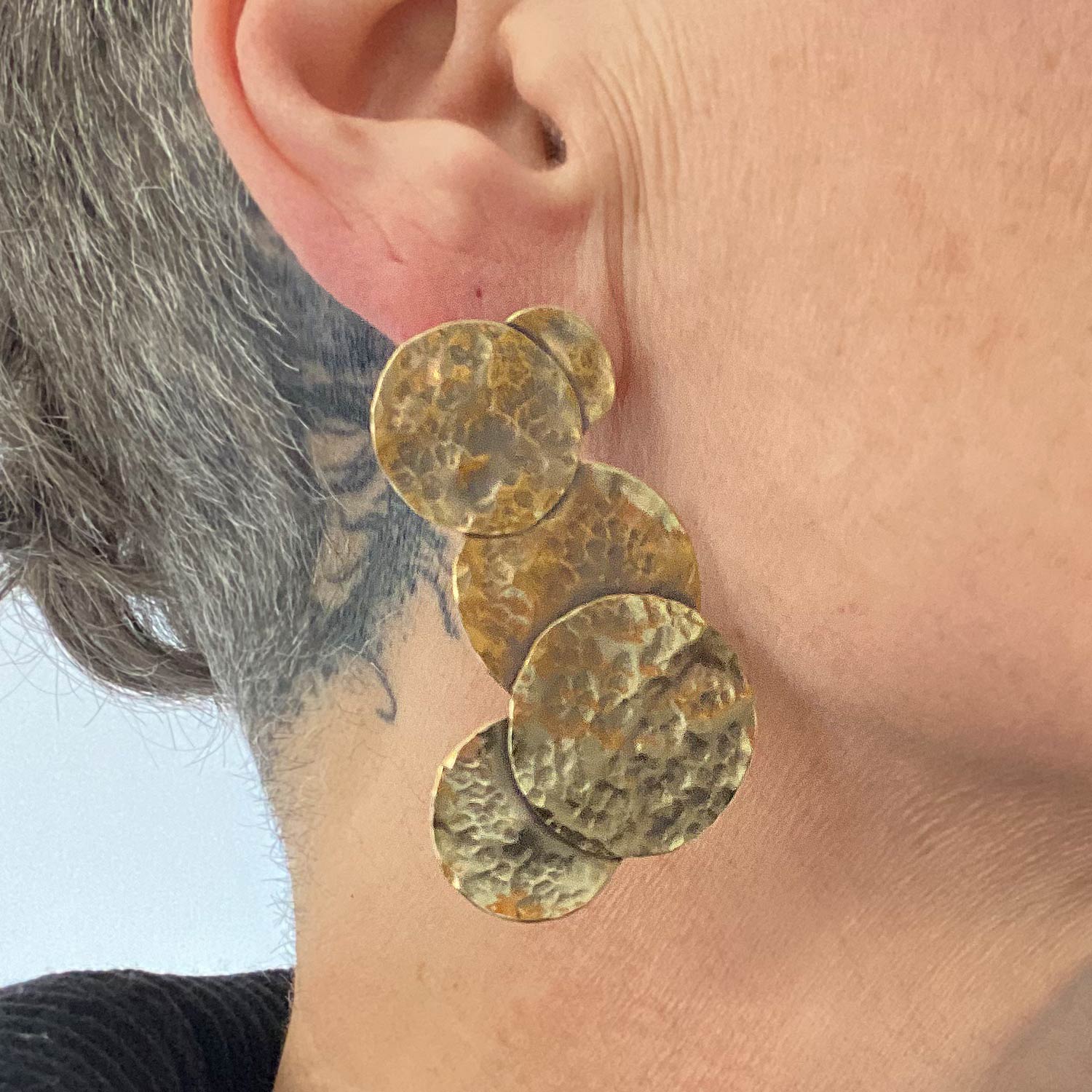 Le laiton martelé ajoute une texture distinctive à la boucle, créant un effet visuel saisissant qui attire instantanément le regard. Son aspect artisanal confère à cette pièce un caractère authentique, faisant de chaque boucle une œuvre d’art unique à part entière.