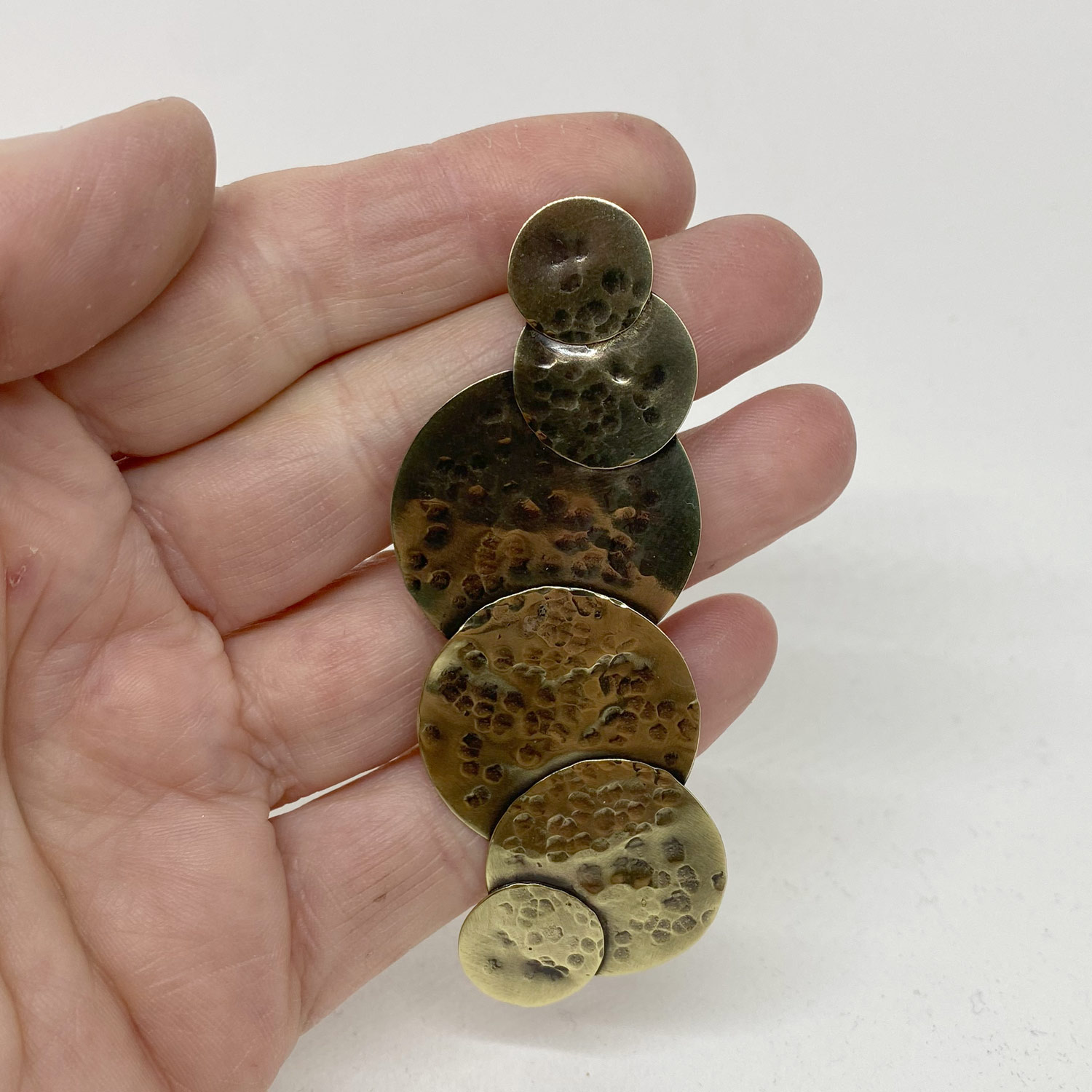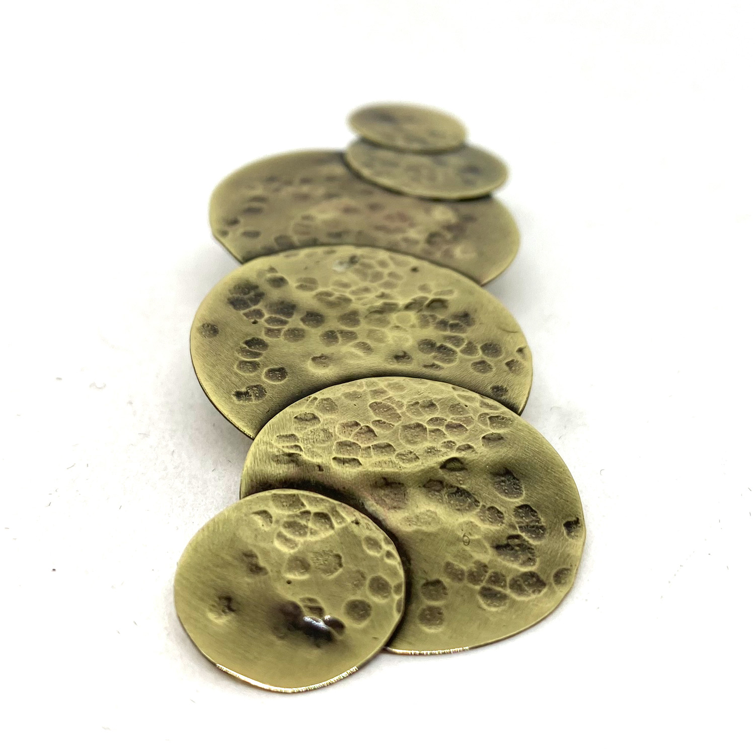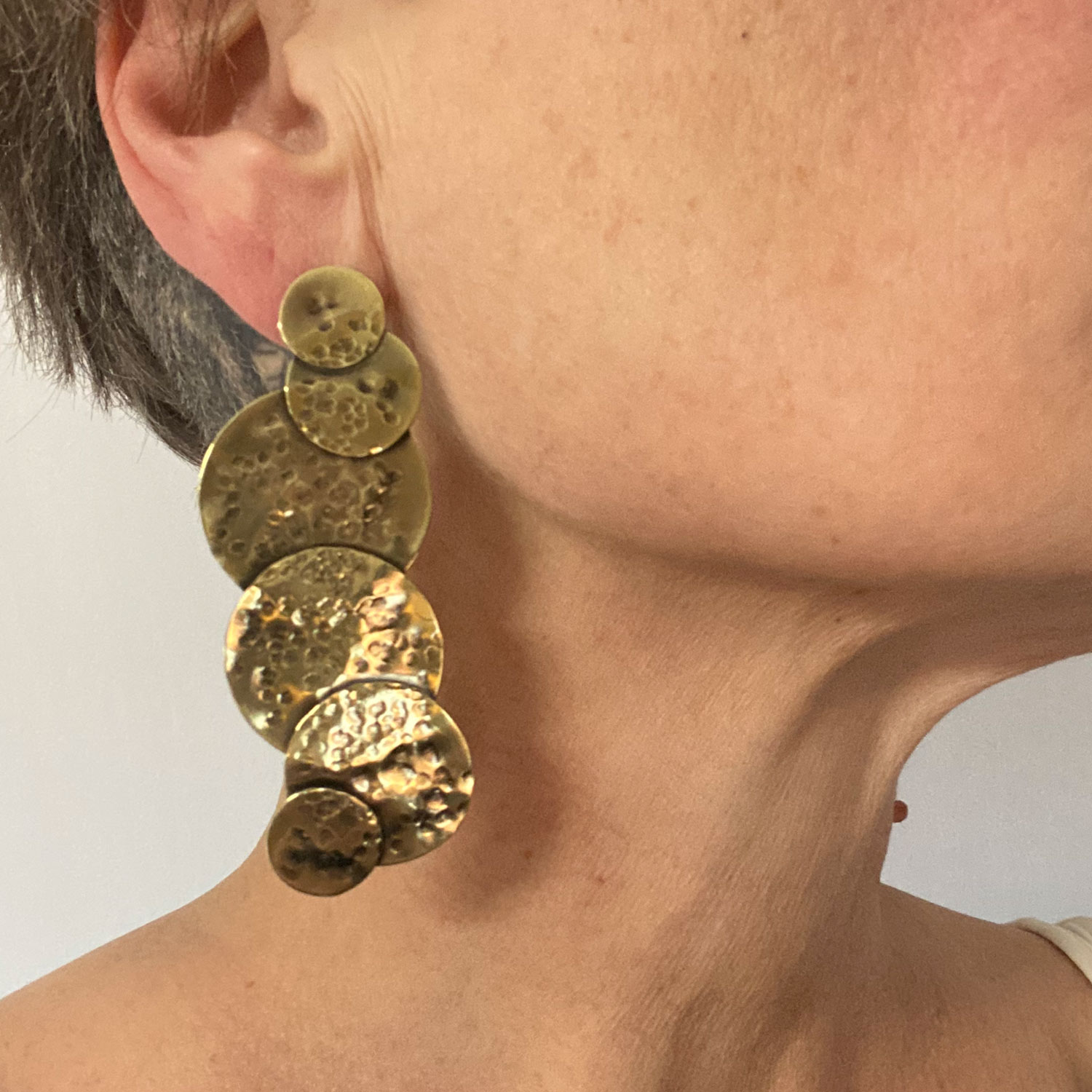 Le laiton martelé ajoute une texture distinctive à la boucle, créant un effet visuel saisissant qui attire instantanément le regard. Son aspect artisanal confère à cette pièce un caractère authentique, faisant de chaque boucle une œuvre d’art unique à part entière.