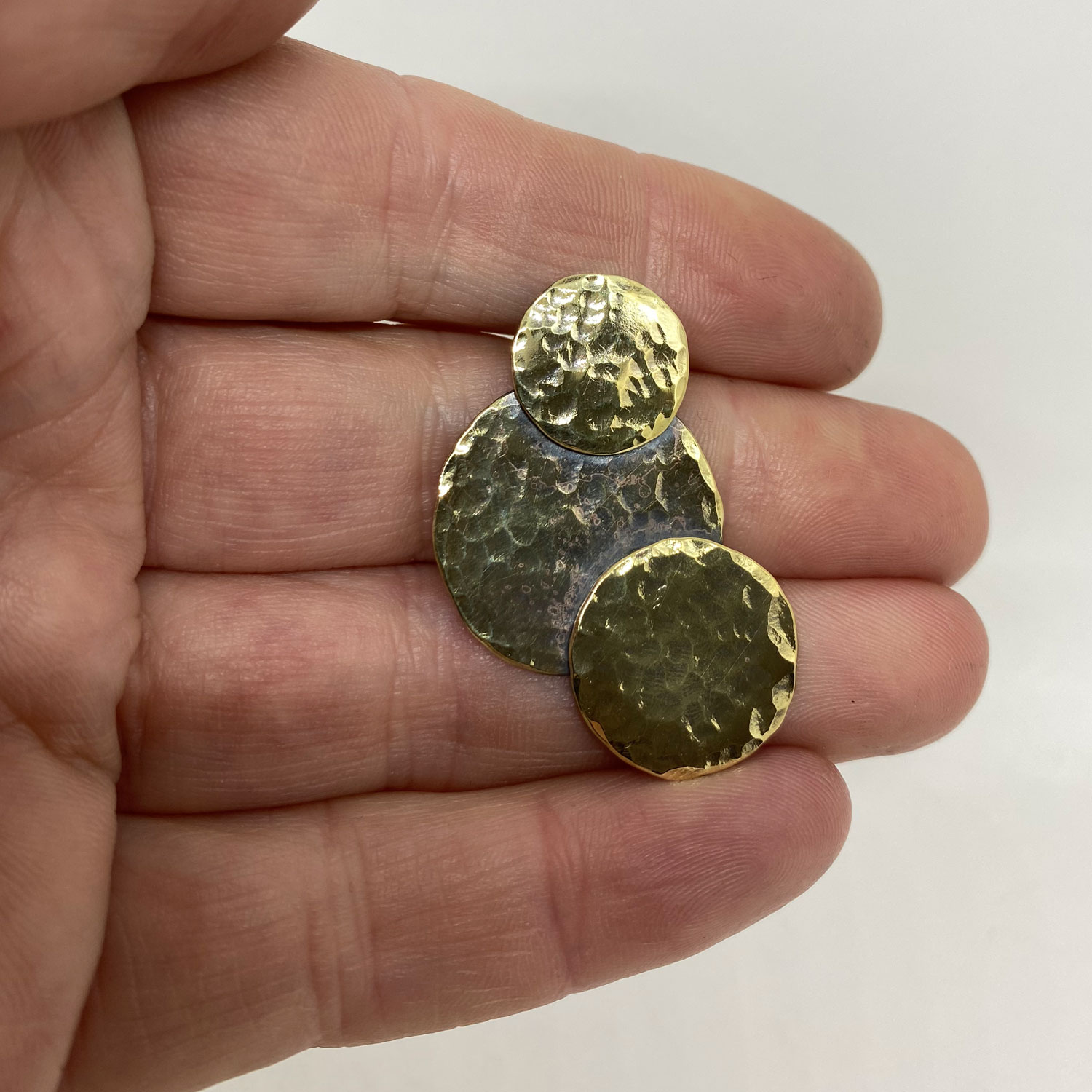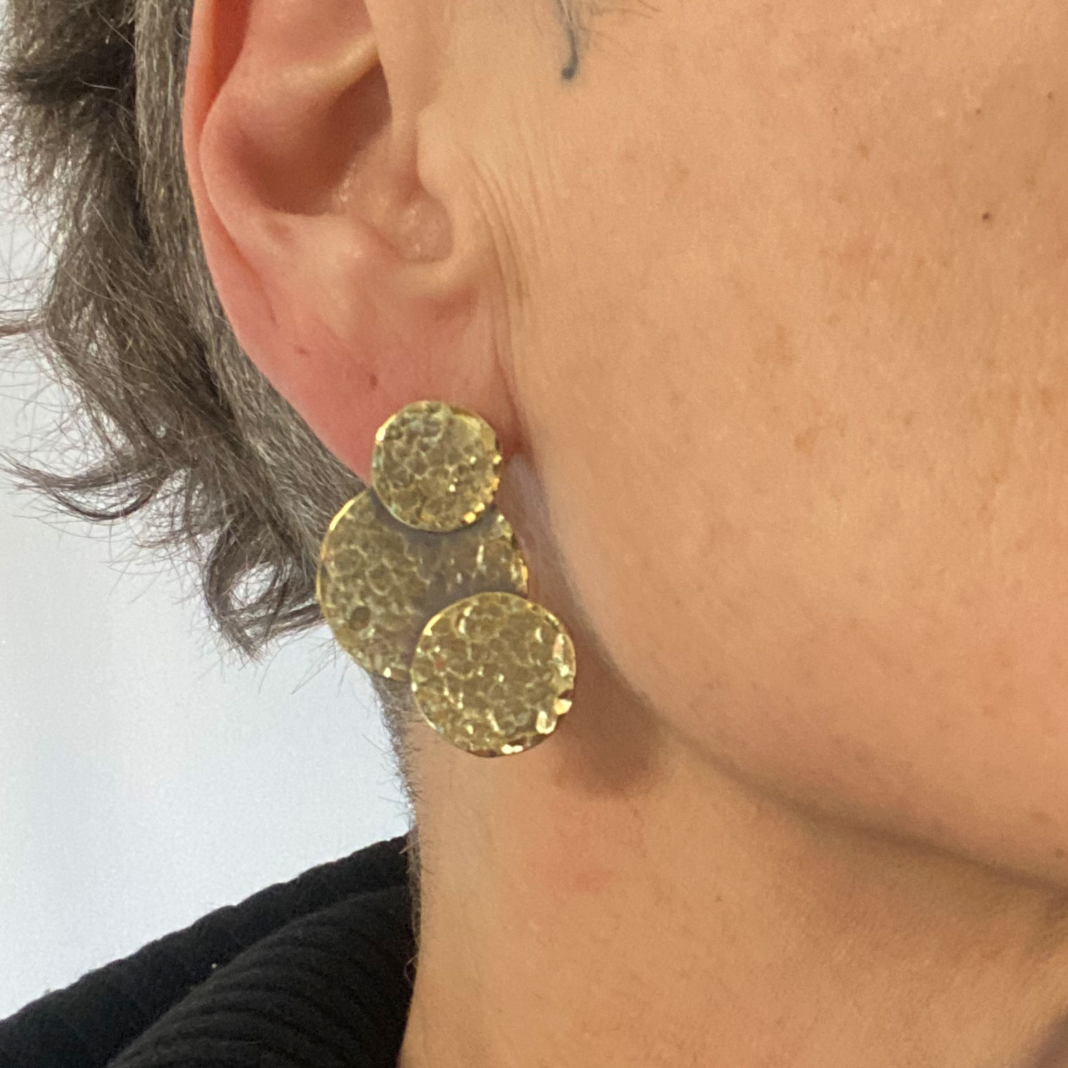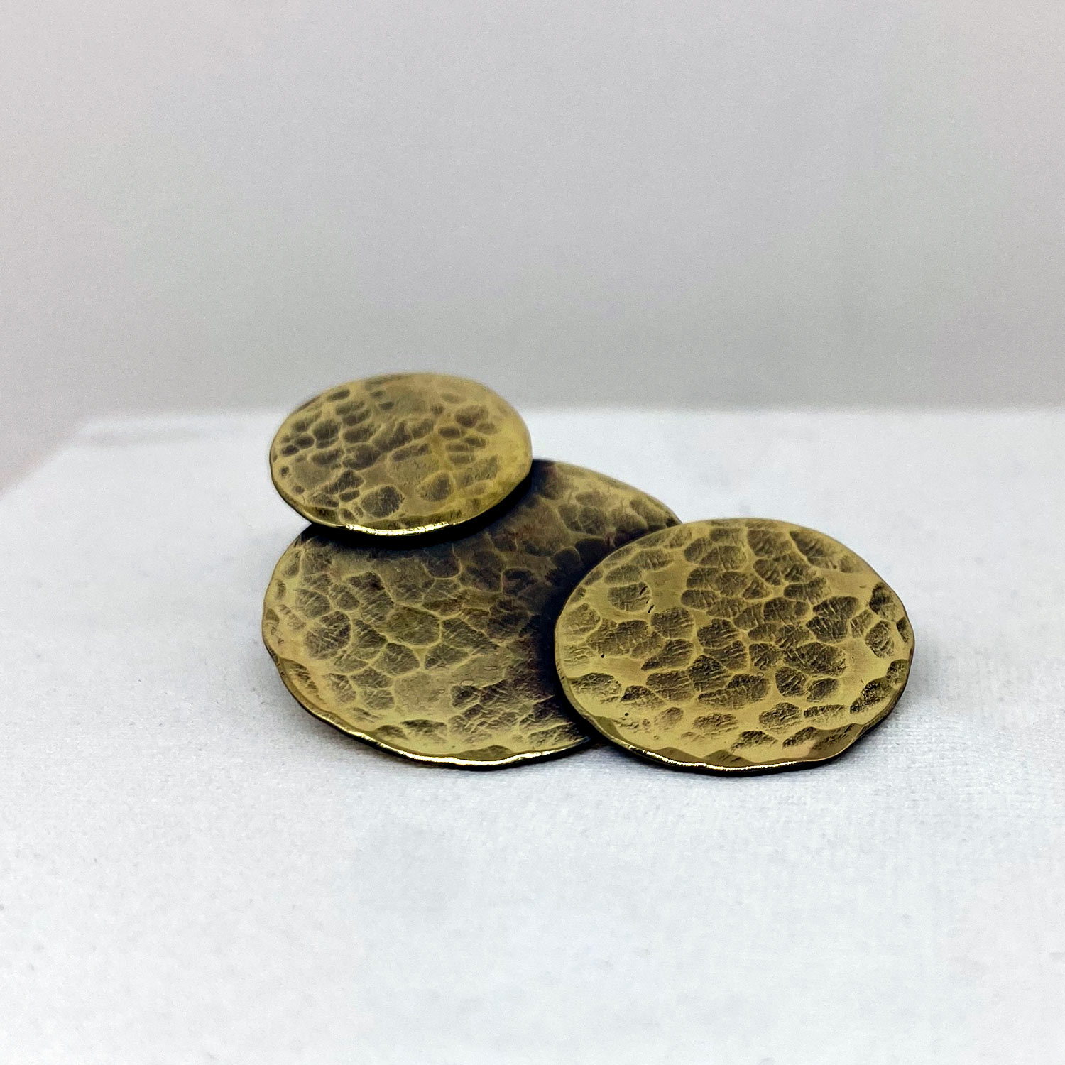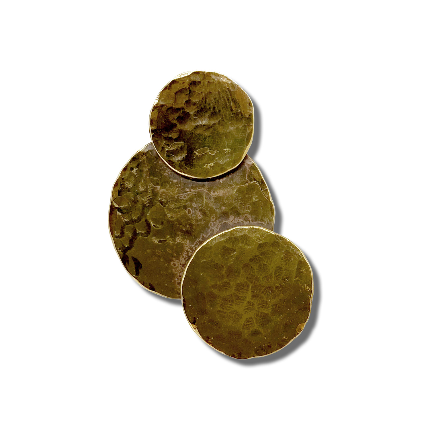 Le laiton martelé ajoute une texture distinctive à la boucle, créant un effet visuel saisissant qui attire instantanément le regard. Son aspect artisanal confère à cette pièce un caractère authentique, faisant de chaque boucle une œuvre d’art unique à part entière.