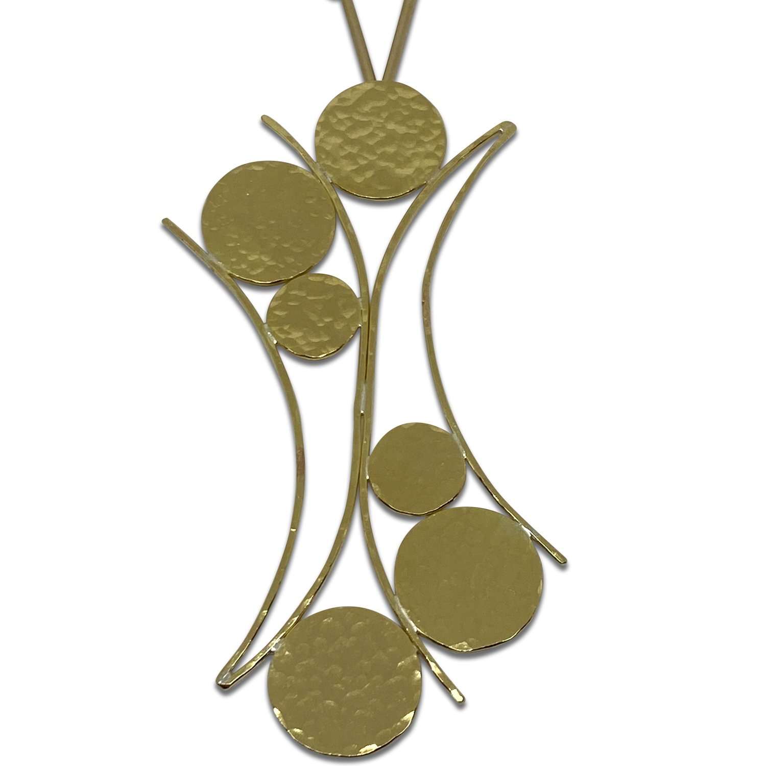 À la fois délicat et audacieux, ce bijou est orné de six pastilles rondes en laiton, symbolisant l’harmonie et l’équilibre. Chaque pastille est soigneusement polie pour révéler l’éclat naturel du métal, ajoutant une touche de brillance subtile à votre tenue.