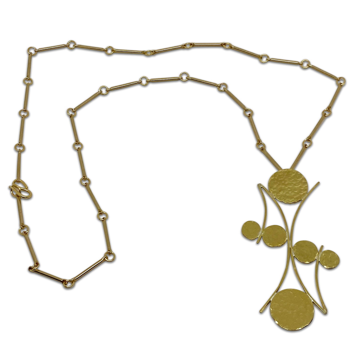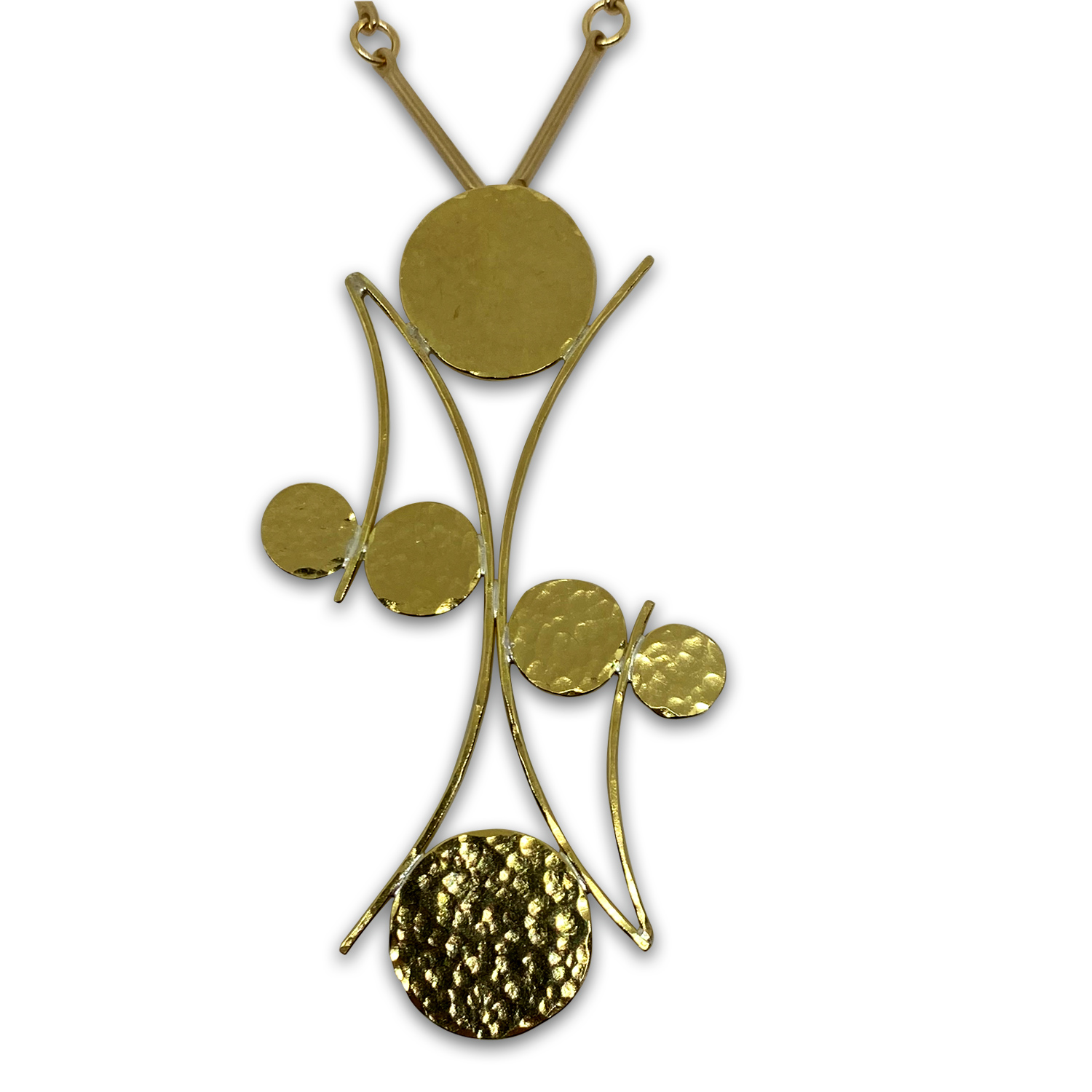À la fois délicat et audacieux, ce bijou est orné de six pastilles rondes en laiton, symbolisant l’harmonie et l’équilibre. Chaque pastille est soigneusement polie pour révéler l’éclat naturel du métal, ajoutant une touche de brillance subtile à votre tenue.