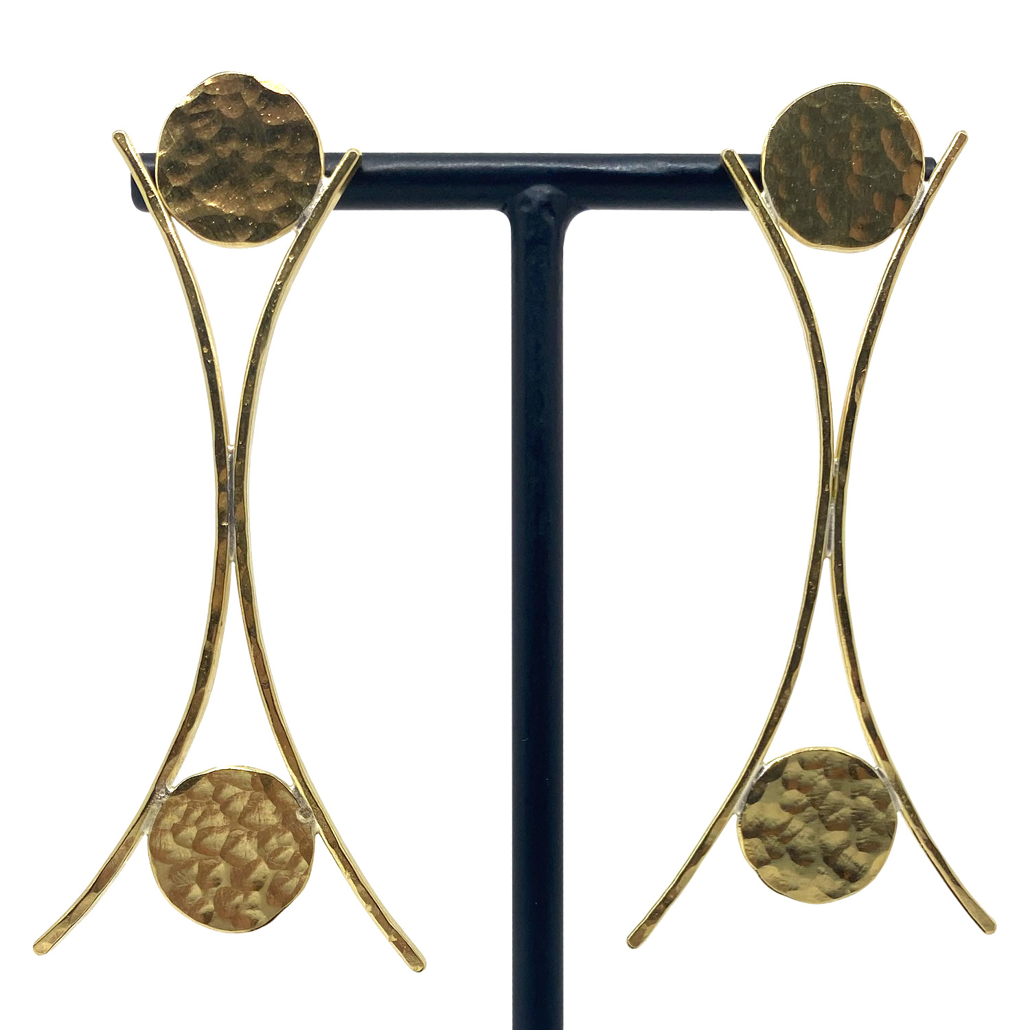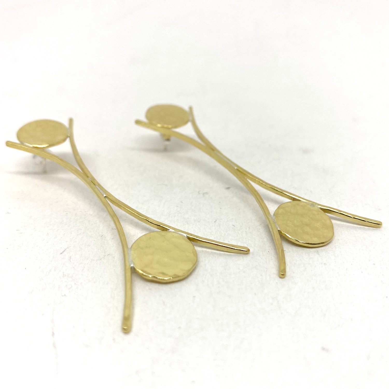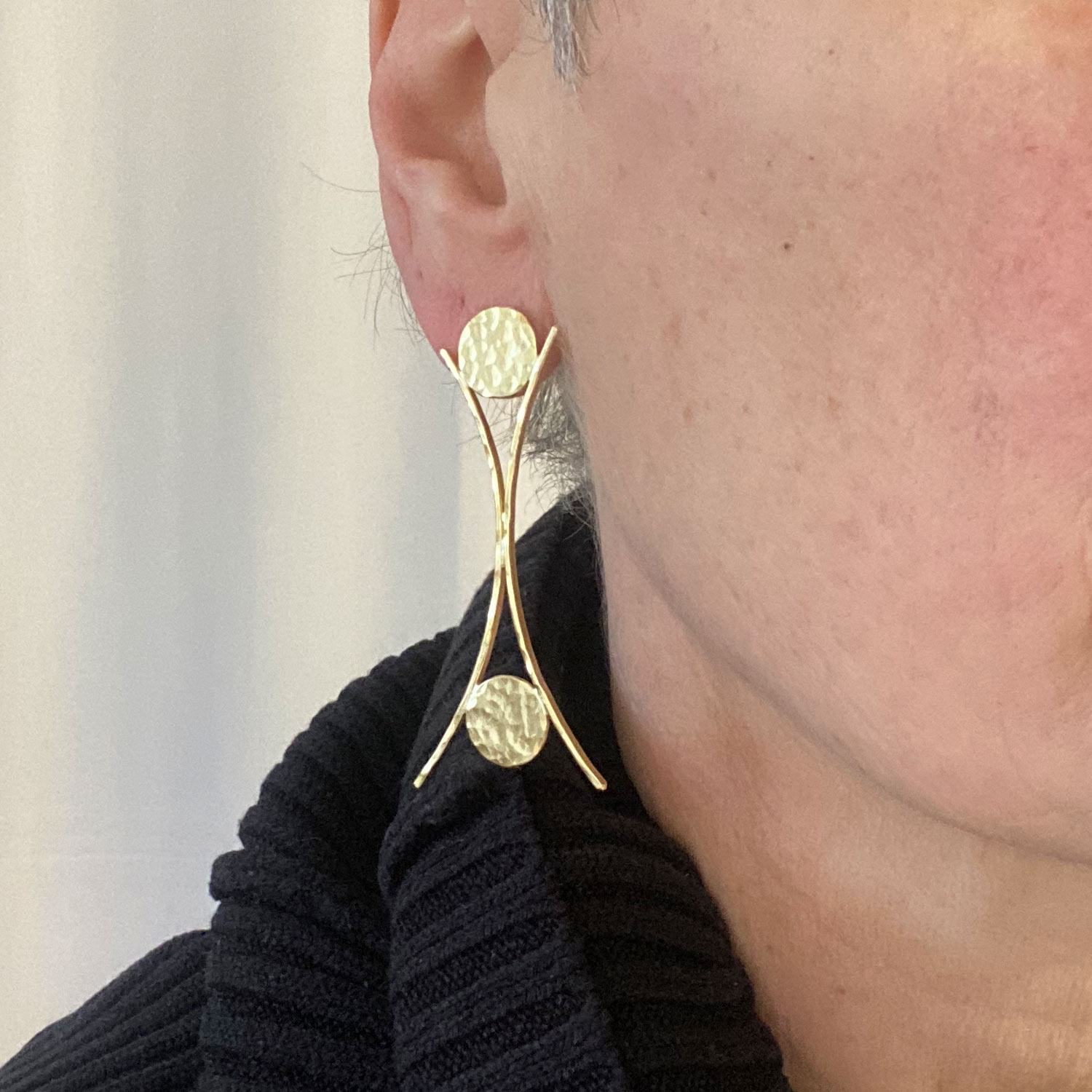 Nos boucles d’oreilles arborent un design unique, mettant en vedette deux ronds délicats suspendus à deux tiges courbes, créant ainsi un mouvement subtil et captivant. Légères et confortables à porter toute la journée, elles sont parfaites pour une soirée spéciale ou pour ajouter une touche de sophistication à votre look quotidien.