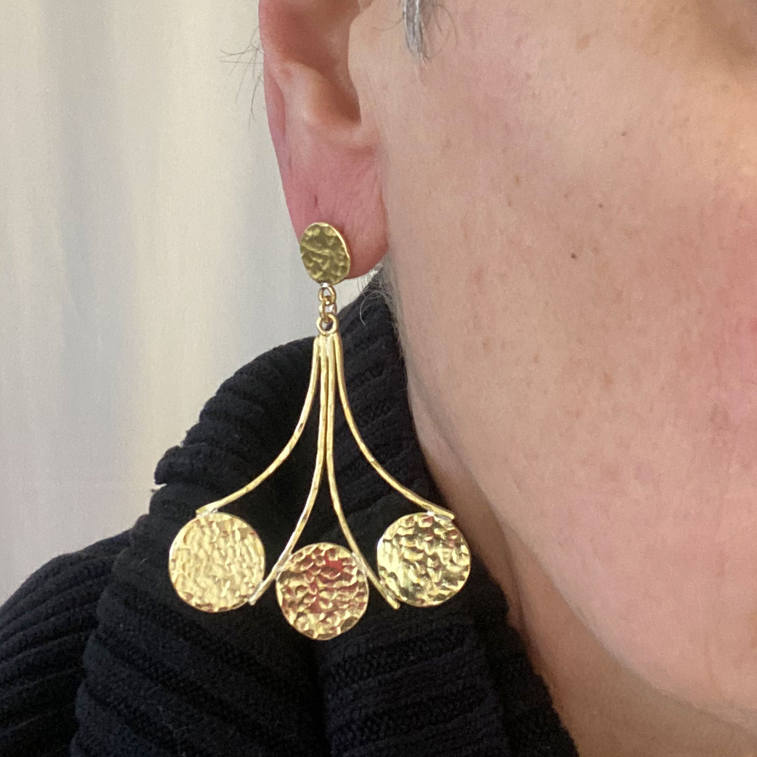 Nos boucles d’oreilles arborent un design unique, mettant en vedette trois ronds délicats suspendus à des courbes, créant ainsi un mouvement subtil et captivant. Confortables à porter toute la journée, elles sont parfaites pour une soirée spéciale ou pour ajouter une touche de sophistication à votre look quotidien.