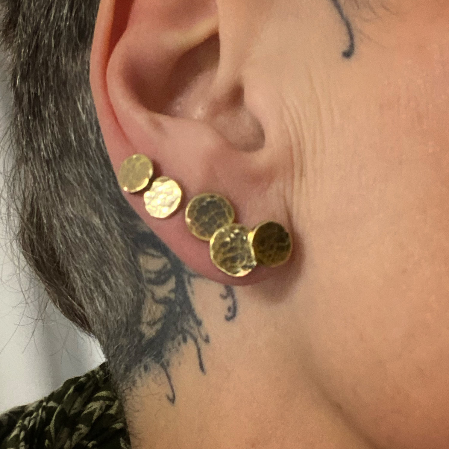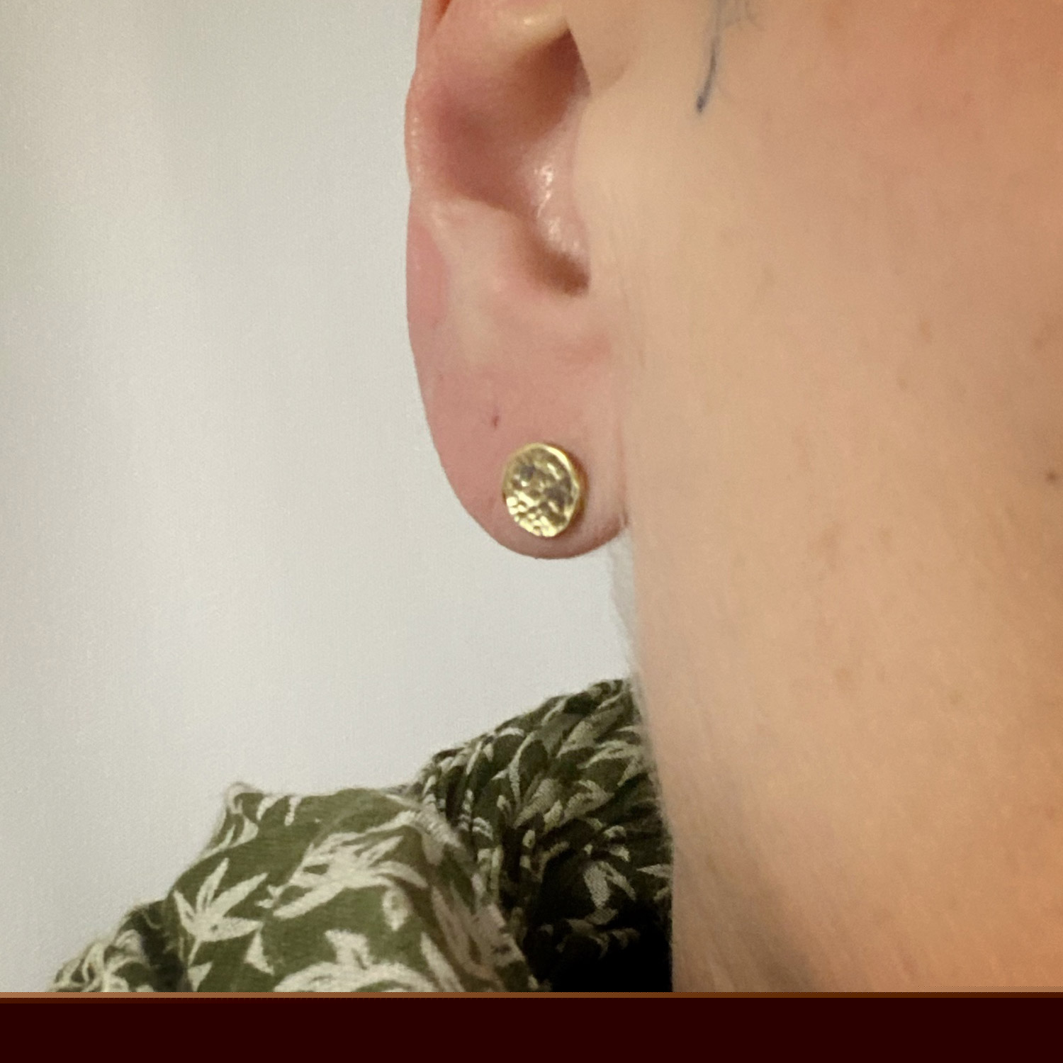 Les joyaux délicats peuvent souvent exprimer une élégance subtile et intemporelle, et nos toutes petites puces d’oreilles en laiton martelé ne font pas exception à cette règle. Le laiton, métal chaleureux et résistant, se transforme sous les mains habiles de la créatrice en une forme ronde, délicate et frappante.